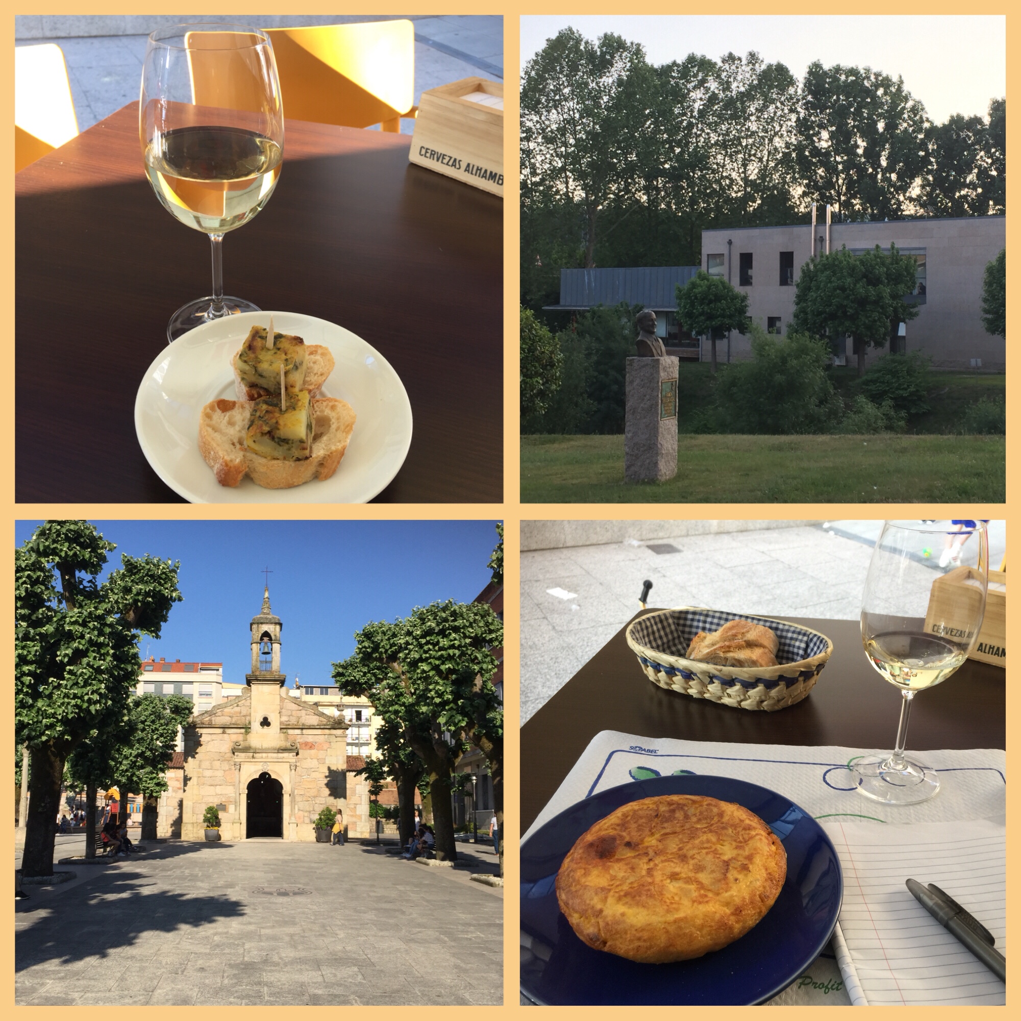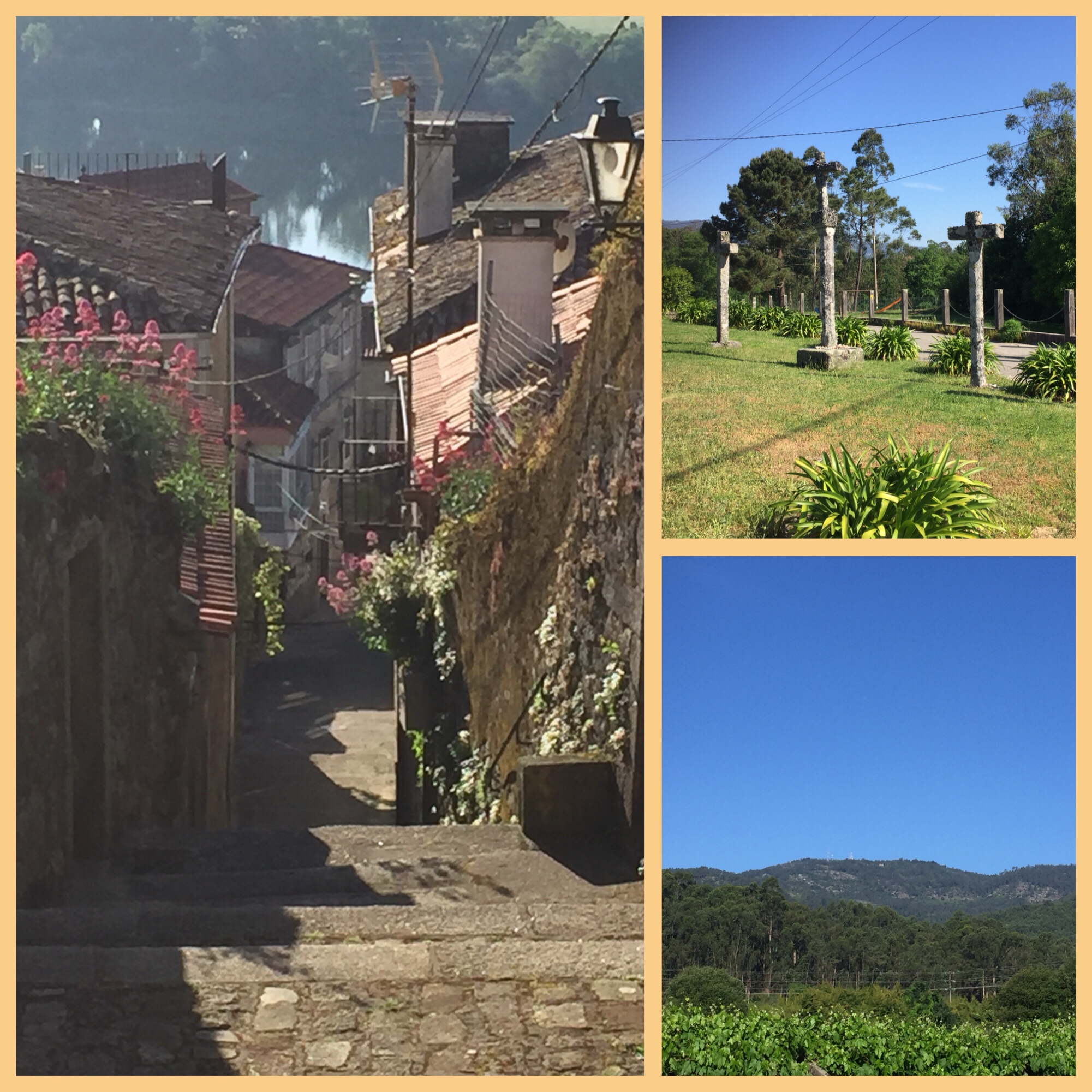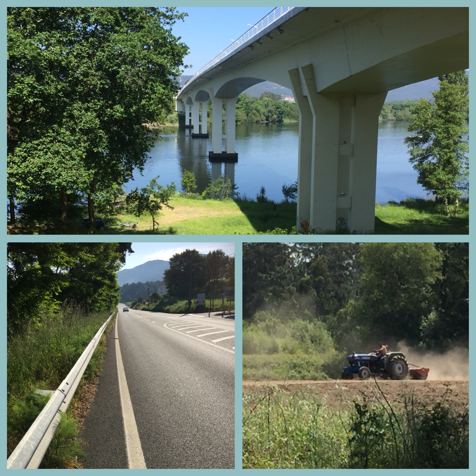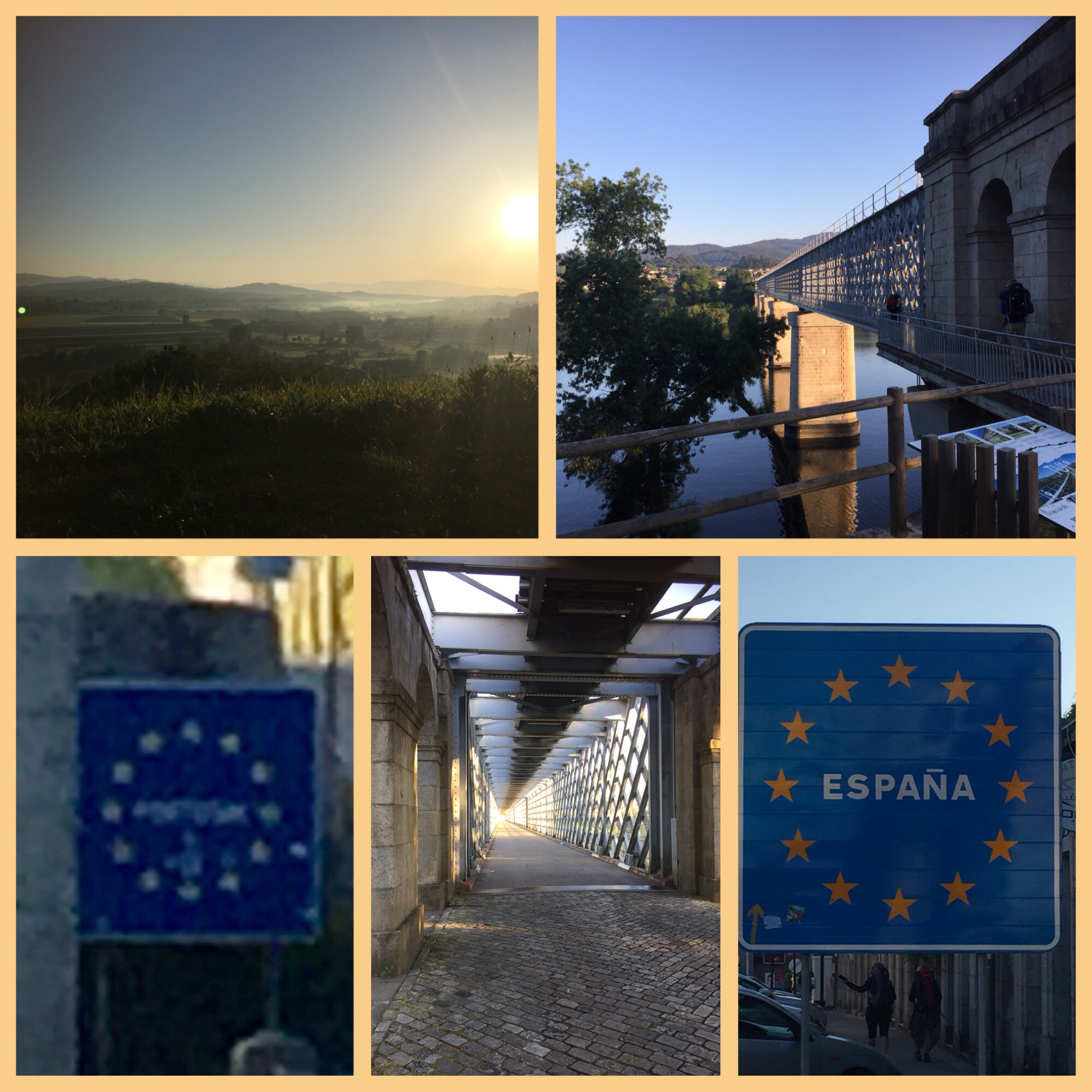 Die nacht een record gezet wbt slapen, ik denk dat ik zeker op 5 uur gekomen ben! Om half 6 gingen mijn buren de spullen al weer inpakken. Het is zo grappig om te merken dat al die mensen eenzelfde patroon hebben, aankomen, douchen, slapen, eten, kletsen, slapen, bed uit en weg… niet overdreven maar ik heb nog niemand ontdekt die het anders doet, behalve ikzelf😃 ik vind het zo lekker om wakker te worden door ’s morgens nog een keer onder die douche te springen en zo heb ik nog wel wat verschillen ontdekt :). Verder heb ik het vroege opstaan en de deur uitgaan al helemaal overgenomen. Ook vandaag liep ik om 7.15 uur weer buiten. Ik begon de dag (weer) met een Duitse dame. We staken de brug over die grensde tussen Portugal en Spanje. Bijzonder moment! Gisteren heb ik de afslag genomen en ben de andere route ingeslagen, niet meer langs de kust en dat is duidelijk te merken. Yeahhh hier staan duidelijke gele pijlen waardoor ik denk ik de weg niet meer kwijt kan raken. Alleen zijn er wel meer mensen op de route. In Spanje stopte we voor koffie. In het café had ik een praatje met een Amerikaan die dacht dat ik uit Californië kwam. Wat een ‘wereldvrouw’ ben ik:) tot nu toe denken ze dat ik Spaans, Italiaans, Frans en nu dus ook Amerikaans ben… alles behalve Nederlandse. De Duitse dame wilde nog even de kathedraal in en ik voelde dat ik wilde gaan lopen dus even goede vrienden, ging ieder zijn (haar) weg. De rest van de dag heb ik weer alleen gelopen wat heerlijk was vandaag. Een Nederlander had prima geweest maar ik had geen zin meer in het Engels .