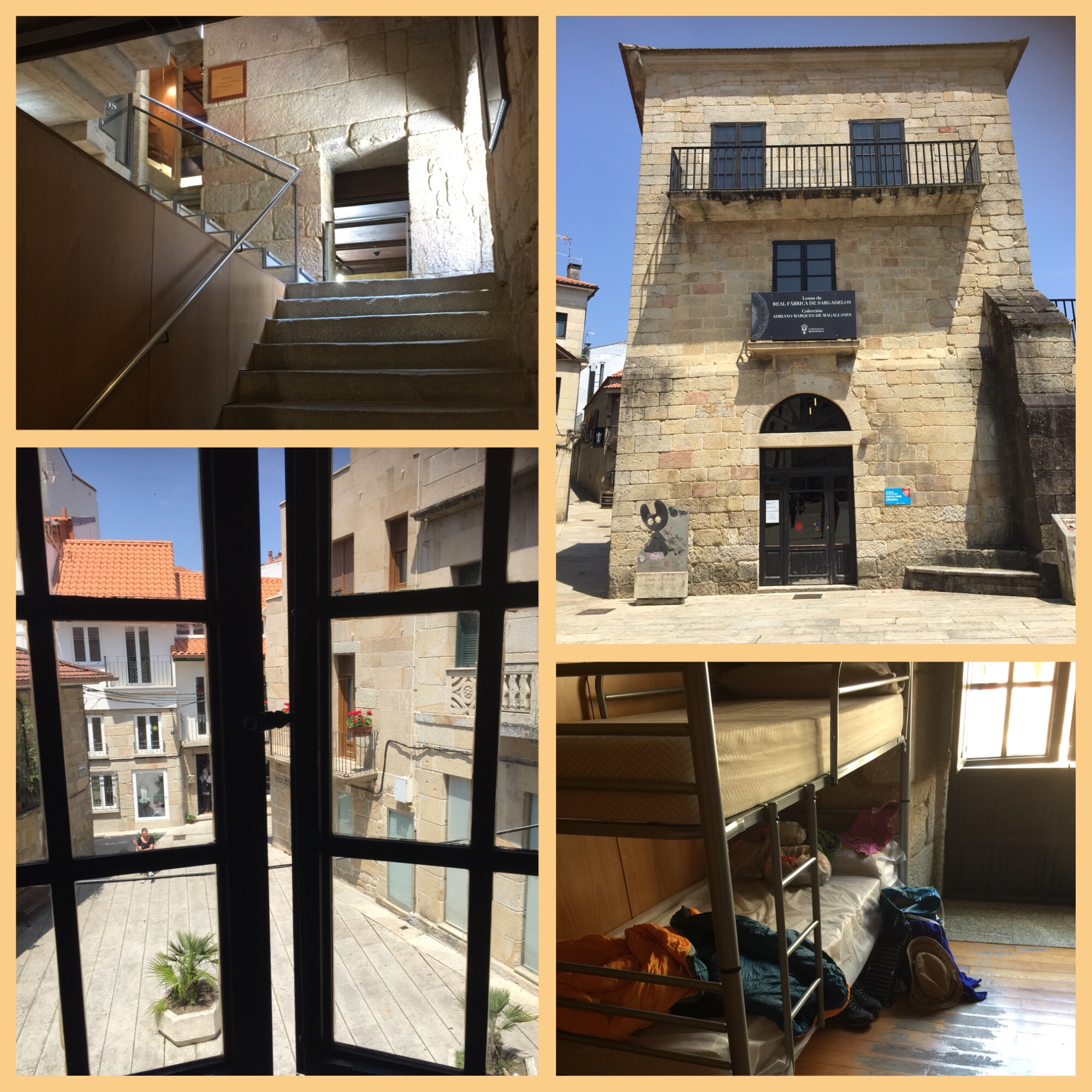 Gisteren was een hele korte wandeling. Ik keek vooral in het begin al naar deze dag uit maar ik ga echt merken dat ik steeds sterker word. Dus toen ik 3,5 uur gewandeld had en al aankwam op bestemming was ik even in dubio. Moet ik niet gewoon nog even doorlopen? Maar toen ik eens rondkeek in het stadje bedacht ik me dat het ook fijn was om eens zonder rugzak lekker rond te lopen en om weer een oplader te scoren. Dat geleur bij iedereen om een snoertje te vragen had ik na 2 dagen wel gehad. Terug naar mijn zelfstandigheid! Het was weer even wachten voor de deur van de Alberque waardoor er een flinke rij ontstond maar ik was zo vroeg waardoor ik een topplek kon bemachtigen. Echt een fantastisch gerenoveerd oud gebouw midden in het centrum.