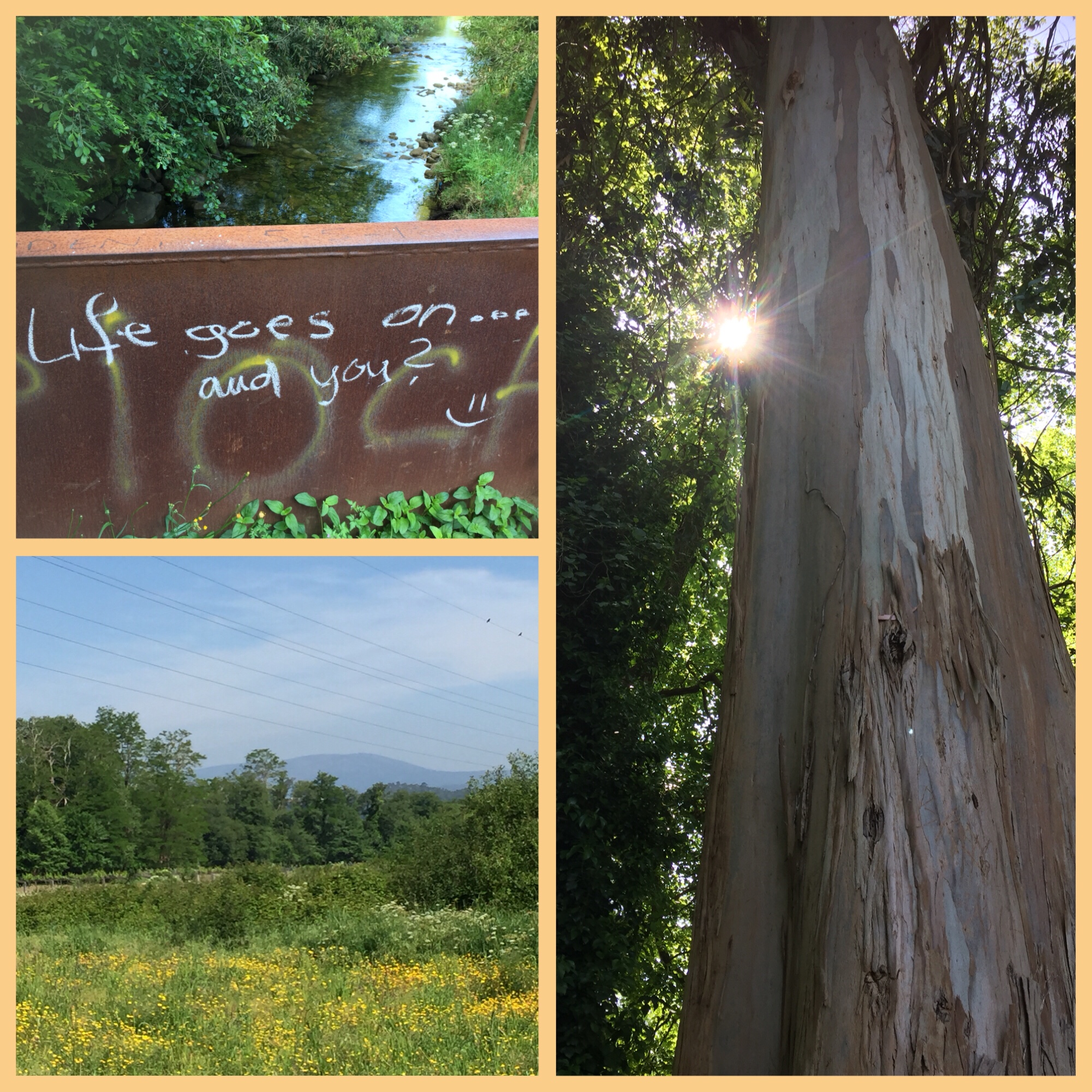 Toen ik naar adem stond te happen na de zoveelste berg liep er een man voorbij. Ik zei dat ik die bergen vreselijk vond en hij antwoordde, na ieder klim komt weer een mooie daling. Dat klonk positief dus ik liep met hem mee. Hij vertelde waar hij vandaan kwam en ik zei hem dat ik pas iemand ontmoet had die daar ook woonde. Op dat moment keek ik naar achter en zag zijn vriend…. Graham??? Maar dan liep ik dus naast Steve… deze twee mannen had ik op dag 2 (of 3) al ontmoet!! We moesten zo lachen. Ik had mijn haar los en zij waren de vorige dagen op zoek naar een vrouw met een staart waardoor ze een keer harder waren gaan lopen omdat ze dachten dat ze me gespot hadden.Wat dus niet zo was. Het gesprek was vorige keer al erg leuk en ging gewoon verder waar we gebleven waren. Ze hadden beiden mooie inzichten over zichzelf gekregen de afgelopen dagen, dat is iets waar je, als je er voor openstaat niet aan ontkomt tijdens het lopen. Ze hadden nog veel meer verhalen want beide heren hadden een boek geschreven en waren bezig met een tweede. De ene over zijn leven bij de Airforce de ander een gedichtenbundel. Ik vertelde dat ik om de dag een stukje schreef over deze reis. Uit het niets zei Steven ineens, zou het niets voor jou zijn om meer te gaan schrijven? Wauw…eh ja zou leuk zijn maar wat? ‘Wordt reisblogger’ zei hij, of misschien ook gedichten… precies de 2 dingen waar mijn interesse ligt. Ik sla het op en neem het in mijn rugzak ( de onzichtbare) mee. Voor ik het wist waren we in de plaats waar ik moest zijn. De twee mannen gingen nog door want ze hadden niet zo lang de tijd. Dikke kussen en een omhelzing volgde want ook deze twee bijzondere vrienden zou ik niet meer terug zien. Bij het afscheid zei ik ze hoe hun vriendschap me raakte, er is zo’n positieve, lieve energie tussen hen. Echt zoals een vriendschap zou moeten zijn. Ze keken elkaar lachend aan,gaven een high five en waren zichtbaar dankbaar in elkaars leven te zijn.