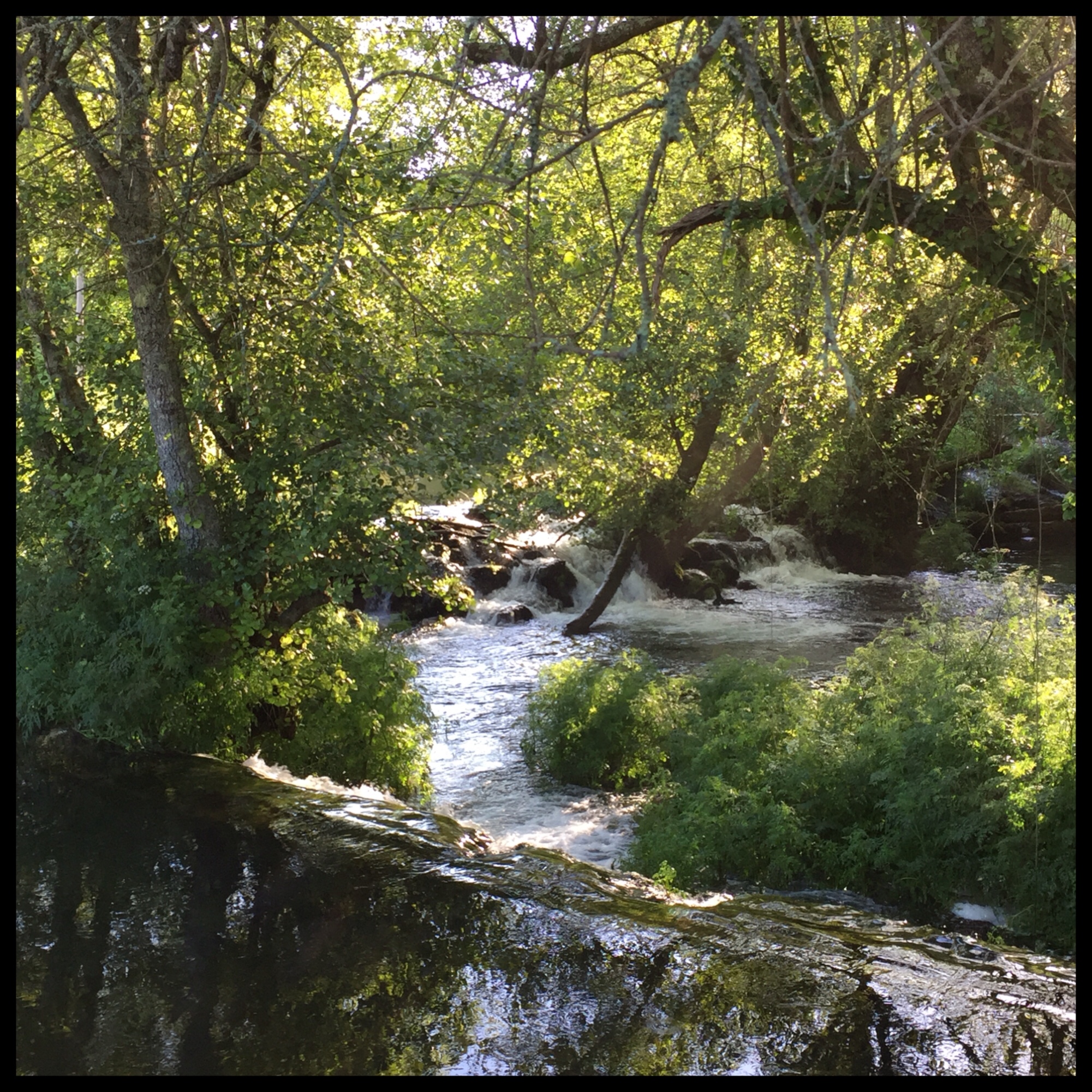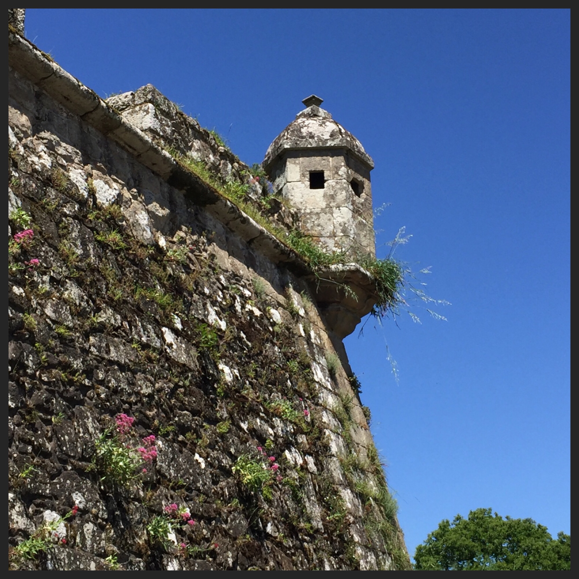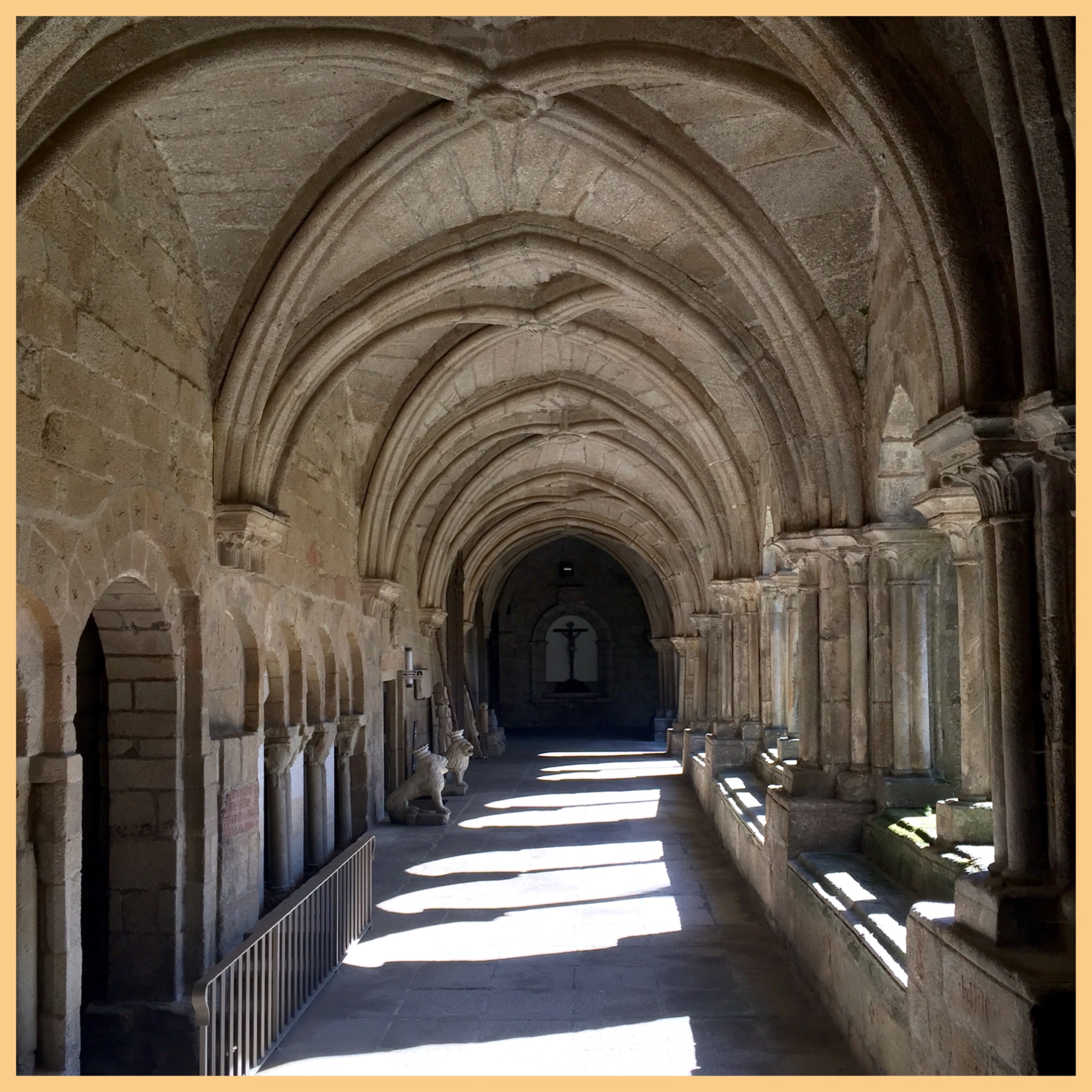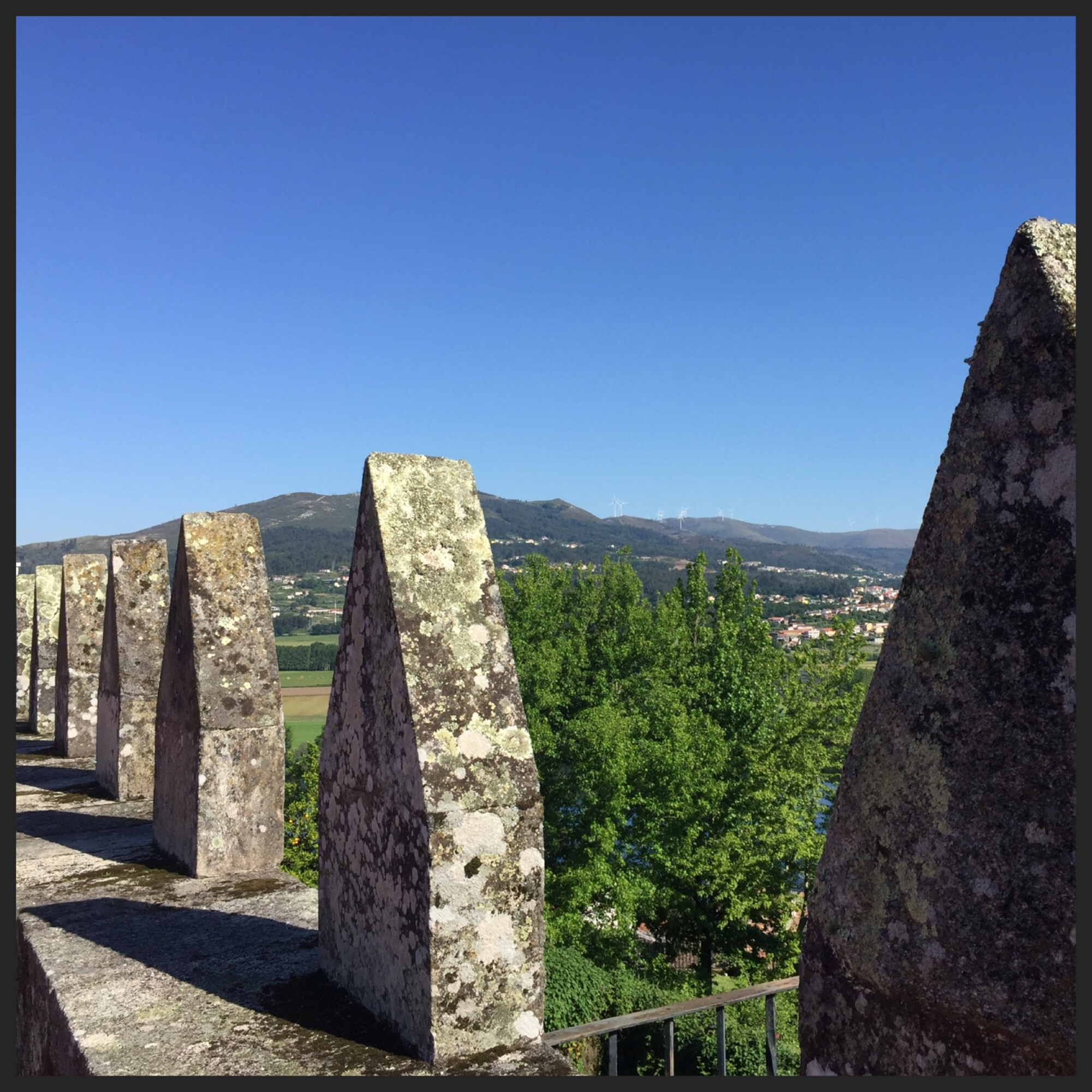 De haan kraaide toen ik rond half 8 de deur uitliep. Mijn gezicht leek erger opgezet en ook mijn hand is zwaar gekneusd en erg dik maar verder voelde ik me fit genoeg om weer op pad te gaan. Geen spierpijn of andere ellende. Wel merkte ik al snel dat ik wat bibberig was en steeds naar de grond liep te kijken. Op een mooi recht stukje eerst even mn kind gebeld die net als ik op avontuur ging met school. Daarna weer door…ik was niet vooruit te branden. Vond er ook niks aan en had heel erg het gevoel dat ik bij de volgende koffiestop ook gewoon helemaal zou stoppen. Om de 5 minuten stond ik stil, fotootje maken dan maar en weer 10 stappen verder. Eindelijk boven op een berg zag ik een terrasje. Het was er gezellig druk en omdat ik inmiddels een bekend hoofd heb werd ik vrolijk begroet en mijn naam al van ver geroepen. Er bleken ook nog 2 ‘nieuwe’ Nederlanders bij te zitten. We raakte aan de praat over wat er gebeurd was en zaten al snel gezellig te kletsen. Langzaam aan stapte de een na de ander weer op… Kristien een vrouw uit New Castle, Carlos uit Italië met het uiterlijk van een Schot, beetje Popeye type, Susan ook uit Engeland die steeds als ze me ziet haar voorraad pilletjes tevoorschijn tovert, Cees en Johanna 2 lieverds uit Zeeland, een charmante Duitser met wie ik al heel wat uren doorgebracht heb maar vandaag ineens besefte dat ik zijn naam eigenlijk niet eens weet, het mooiste meisje van de Camino een 26 jarige Duitse…Doutzen Croes eat your heart out… de twee heren stonden op toen ik ook weer op het punt van vertrekken stond. Ik voelde dat ik een boost had gekregen van dit weerzien en de gezelligheid. We zette het gesprek al wandelend voort. Joshua een 30 jarige Brabander en Pico een 71 jarige Rotterdamse Hagenees😃 Ik was door mijn dip heen. Voelde mijn rugzak niet meer en liep weer vol energie die dag verder. Rond de middag liepen we via de brug vanuit Portugal, Spanje in. Toch wel een bijzonder moment. De mannen hadden een reservering maar besloten eerst nog even wat te eten bij een super leuk hostel. Ik zou proberen hier te slapen. Helaas het was al vol dus ik besloot met hun mee te gaan. Er was nog een bed vrij. Na een lekkere douche gingen we de stad in om de Kathadraal te gaan bekijken. Heel erg mooi! Daarna tijd om ergens neer te strijken. We kwamen Kristien en Carlos tegen. Dat werd een hele gezellig avond. Af en toe schoof er nog iemand aan. Wat tapas gegeten en vooral veel gelachen. Inmiddels was het donker en werd het terugvinden van het hostel een uitdaging….