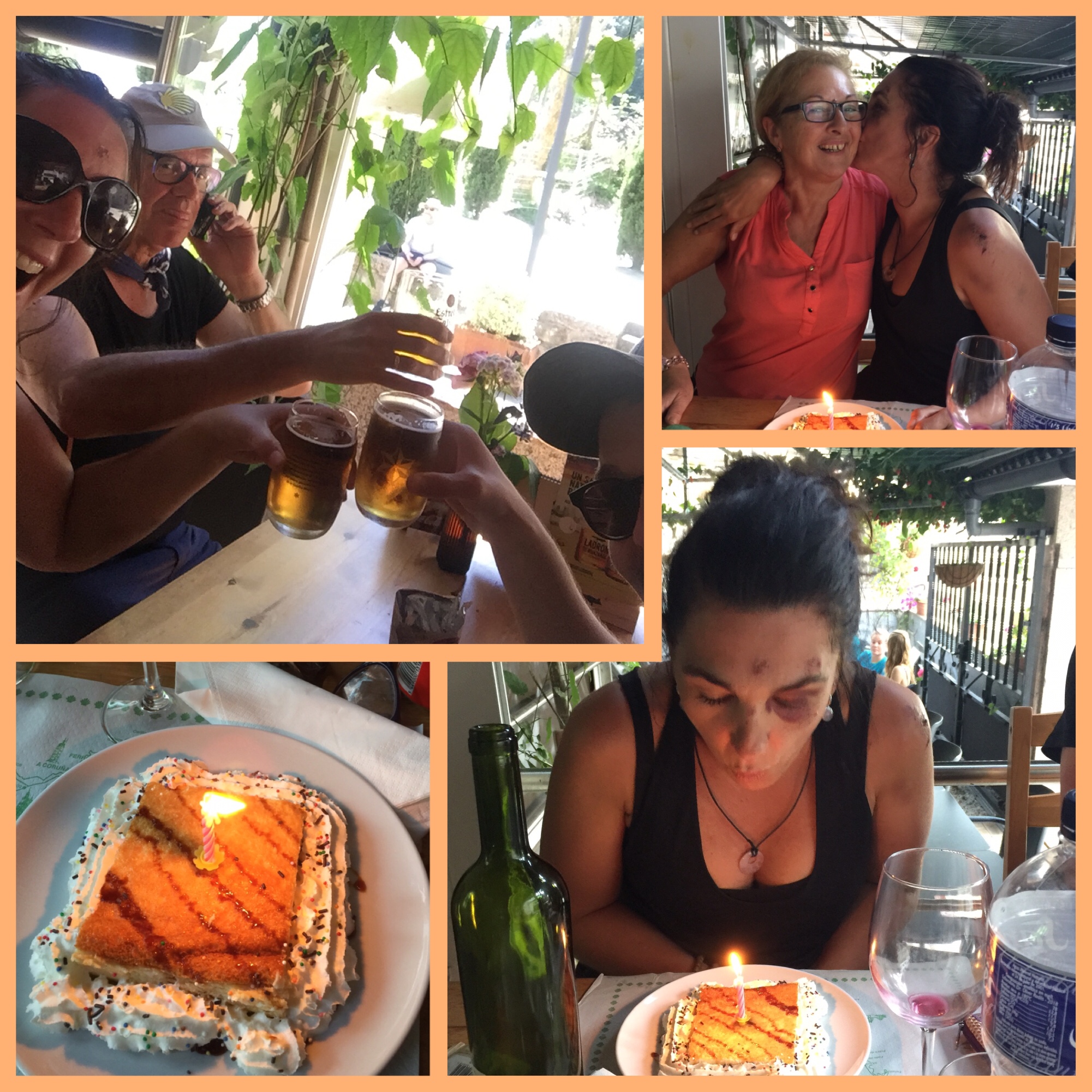 Die dag was het erg warm. Nog zo’n kado want wat hou ik daar van!!! We (Joshua, Pico en ik) liepen een stukje verder dan gepland. In het hostel de spullen neer gegooid en eerst maar wat drinken. Het was er erg gezellig, echt vakantiesfeertje. We zaten prima en na twee uur besloten we eerst maar te eten voordat we gingen douchen. Op dat moment kwam de Duitser er ook bij zitten samen met Mascha uit Kazachstan. Onverwacht werd het ineens een echte feestmaaltijd. Een tafel vol tapas en lekkere wijn. We hebben zo vreselijk gelachen, tranen over mijn wangen. Het was een top avond en net toen ik dat zat te bedenken kwam het personeel van het hostel zingend om de hoek met een taartje in hun handen. Het hele terras zong mee. Toen heb ik wel even een traantje gelaten… zoveel liefde van eigenlijk nog onbekende mensen❤️ ik voelde me heel erg gelukkig!!! Joshua had me die avond al gevraagd hoe hij mijn verjaardag nog leuker kon maken maar daar was niks meer voor nodig, het was perfect!!!