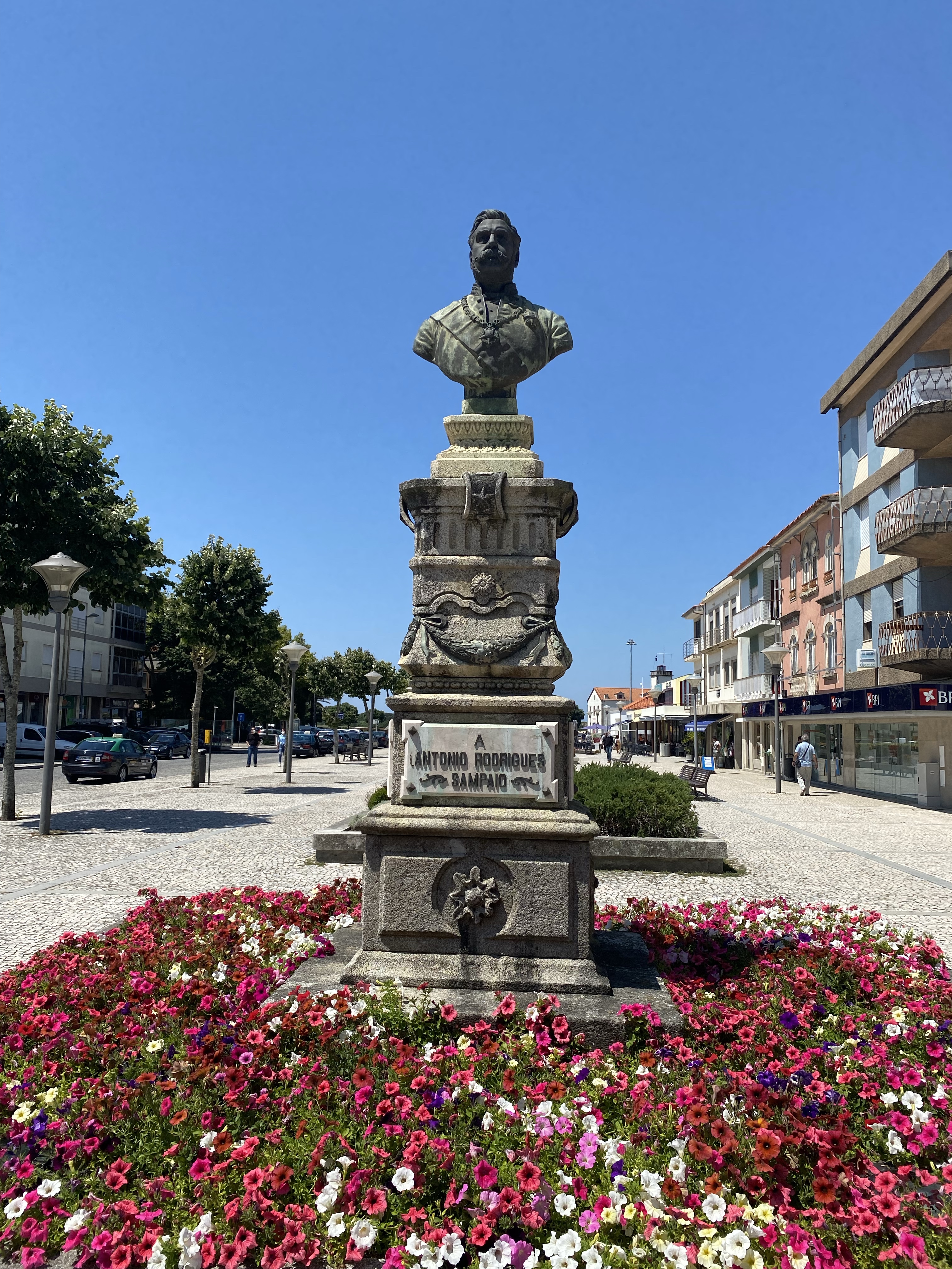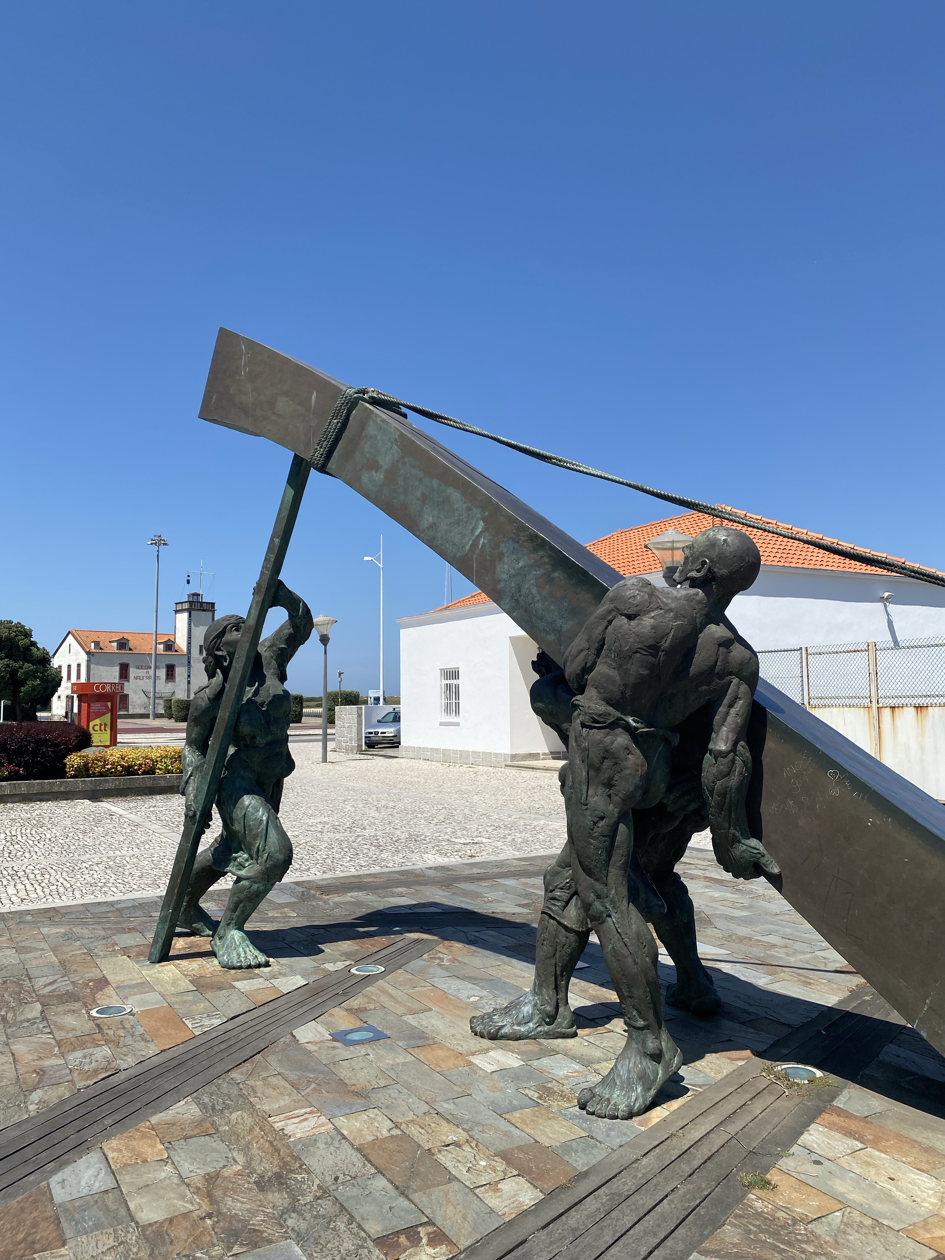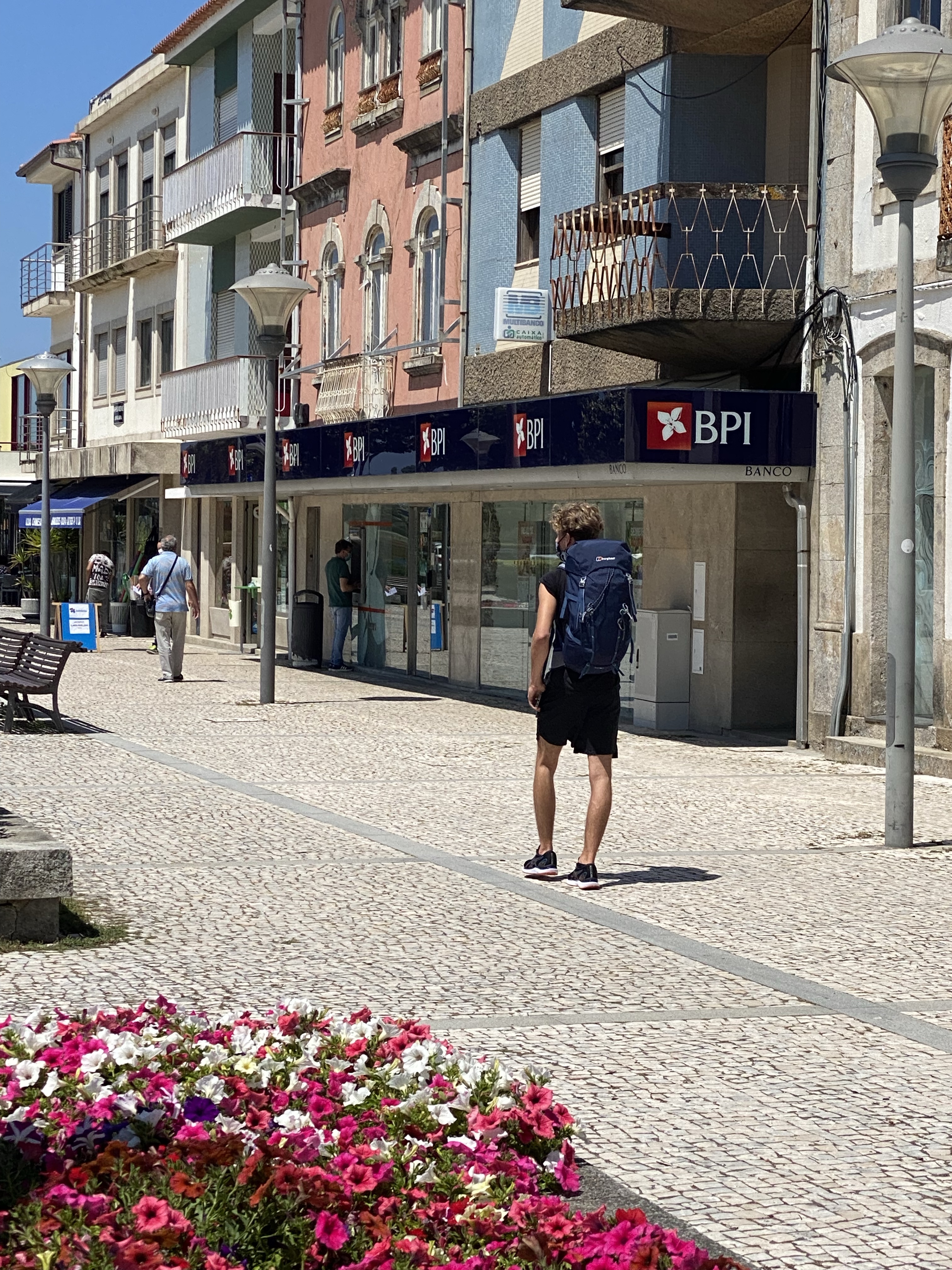 Uurtje later stapte we in Esposende uit. En het was heet!!! Door de haast vanmorgen liep ik nog in een lange broek.. Twijfelde even of ik in mijn broek stond te plassen maar het was zweet.(dit om het beeldend te maken want die gedachten is eerlijk gezegd geen moment in me op gekomen)