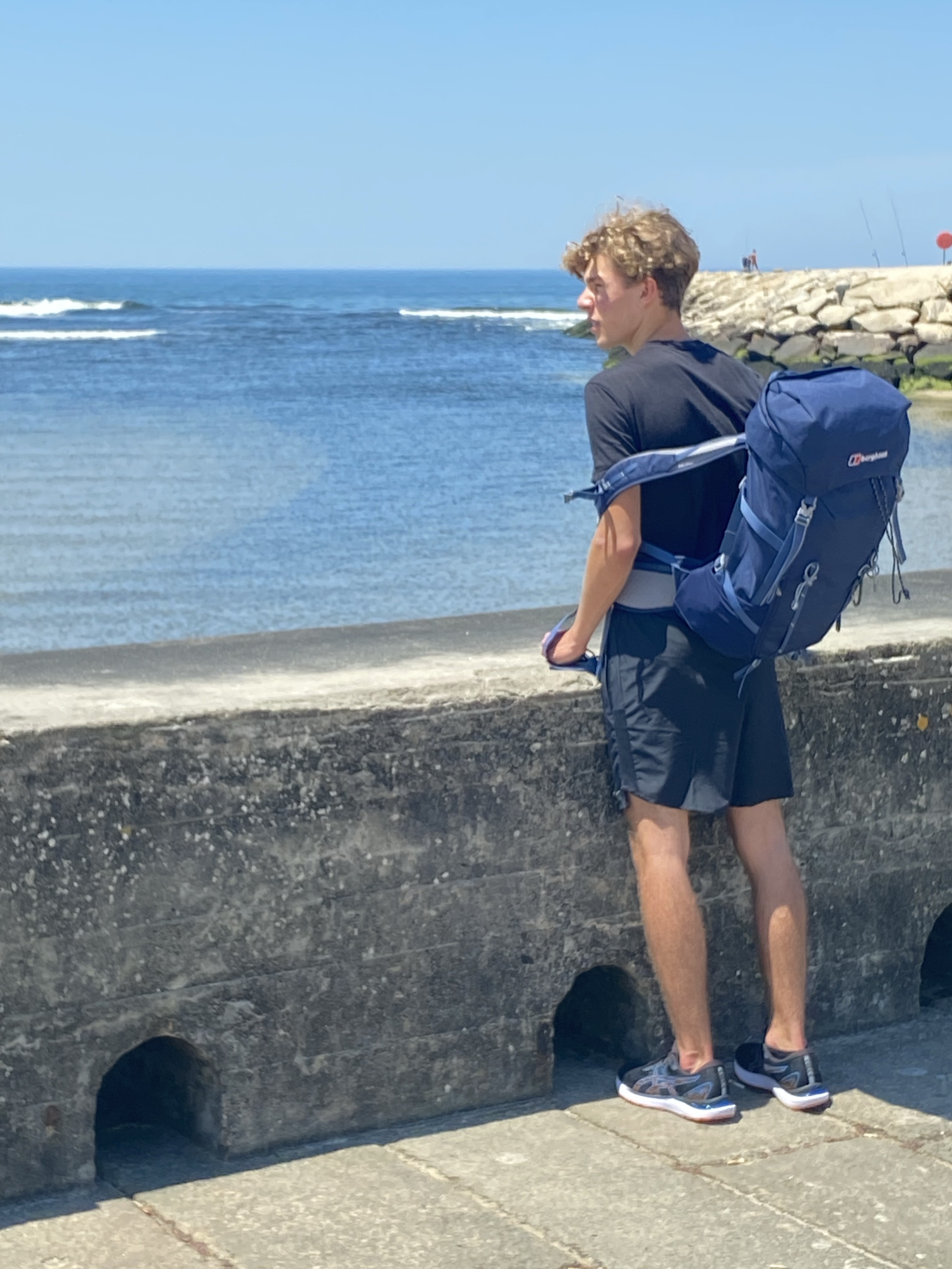 Op naar het strand!! Wat een lekker begin van de Camino. We vielen alle twee al snel in slaap. Dat leverde me gelijk een kreeftachtig kleurtje op. Pepijn begon vanmiddag ook ineens langzaamaan te beseffen dat het toch best wel een eind lopen is. Misschien kunnen we de bus pakken? Nee! Oh… oke…Door de warmte hebben we wel besloten om op tijd de deur uit te gaan om niet te lang op het heetst van de dag te lopen.