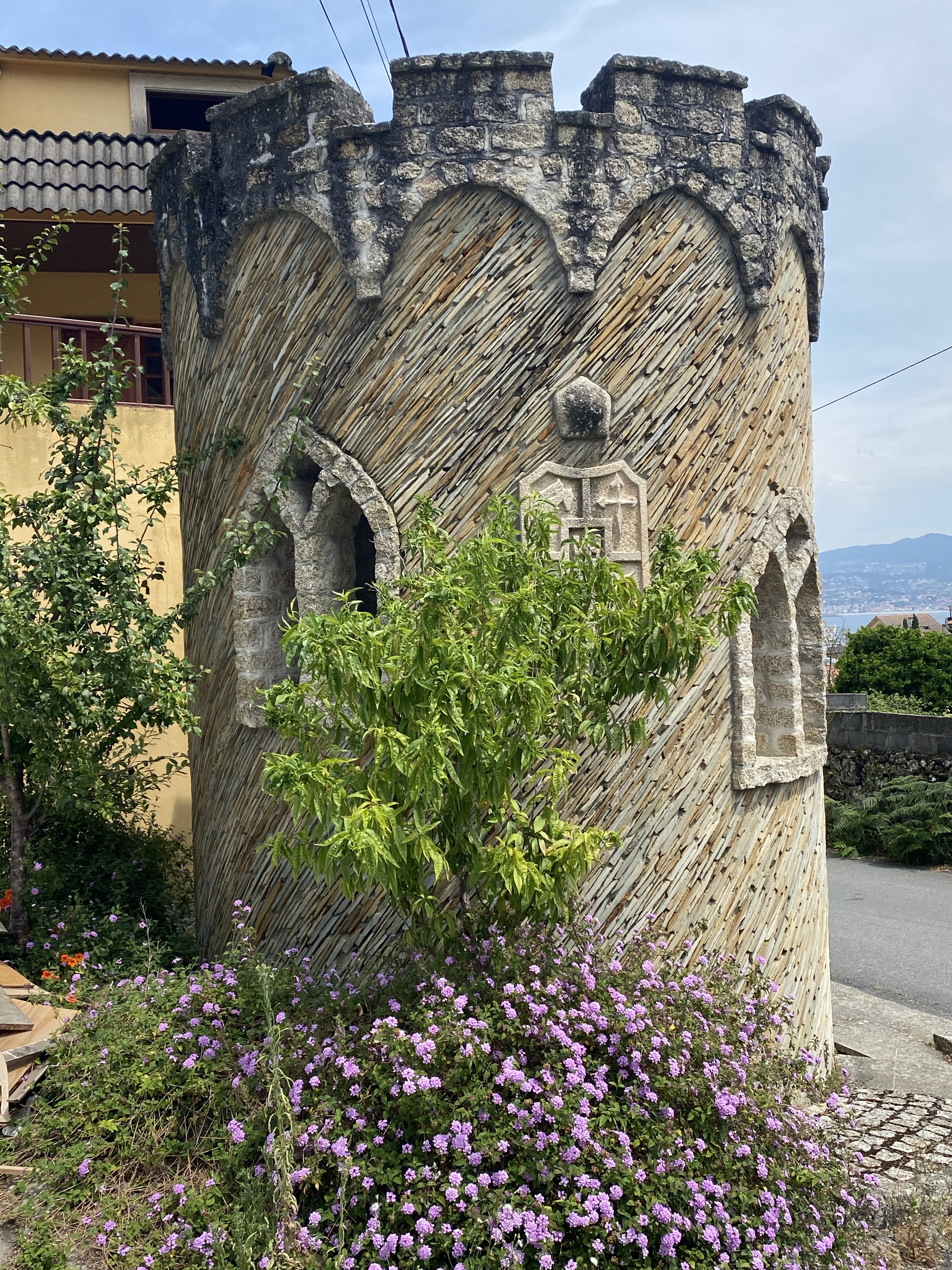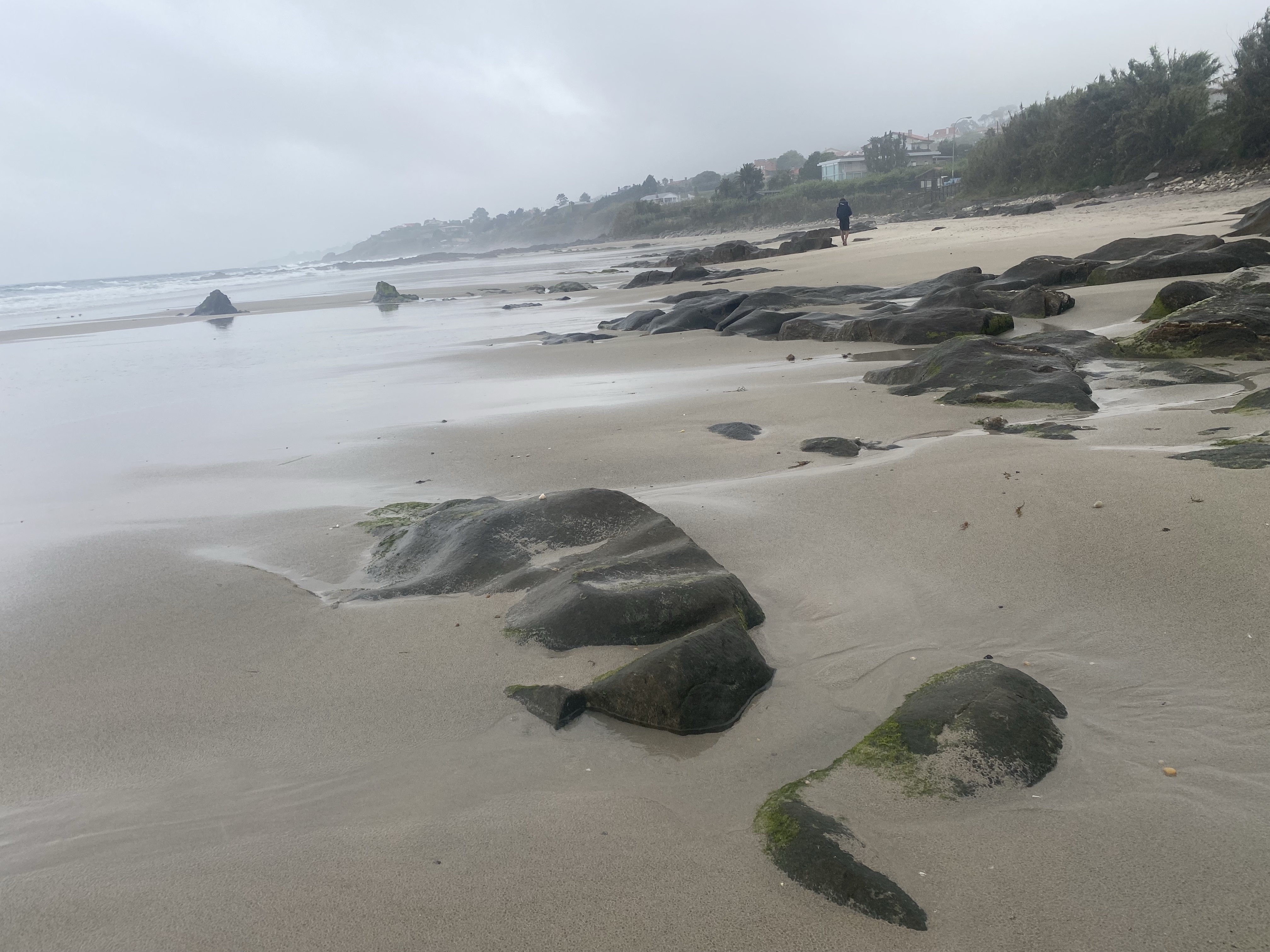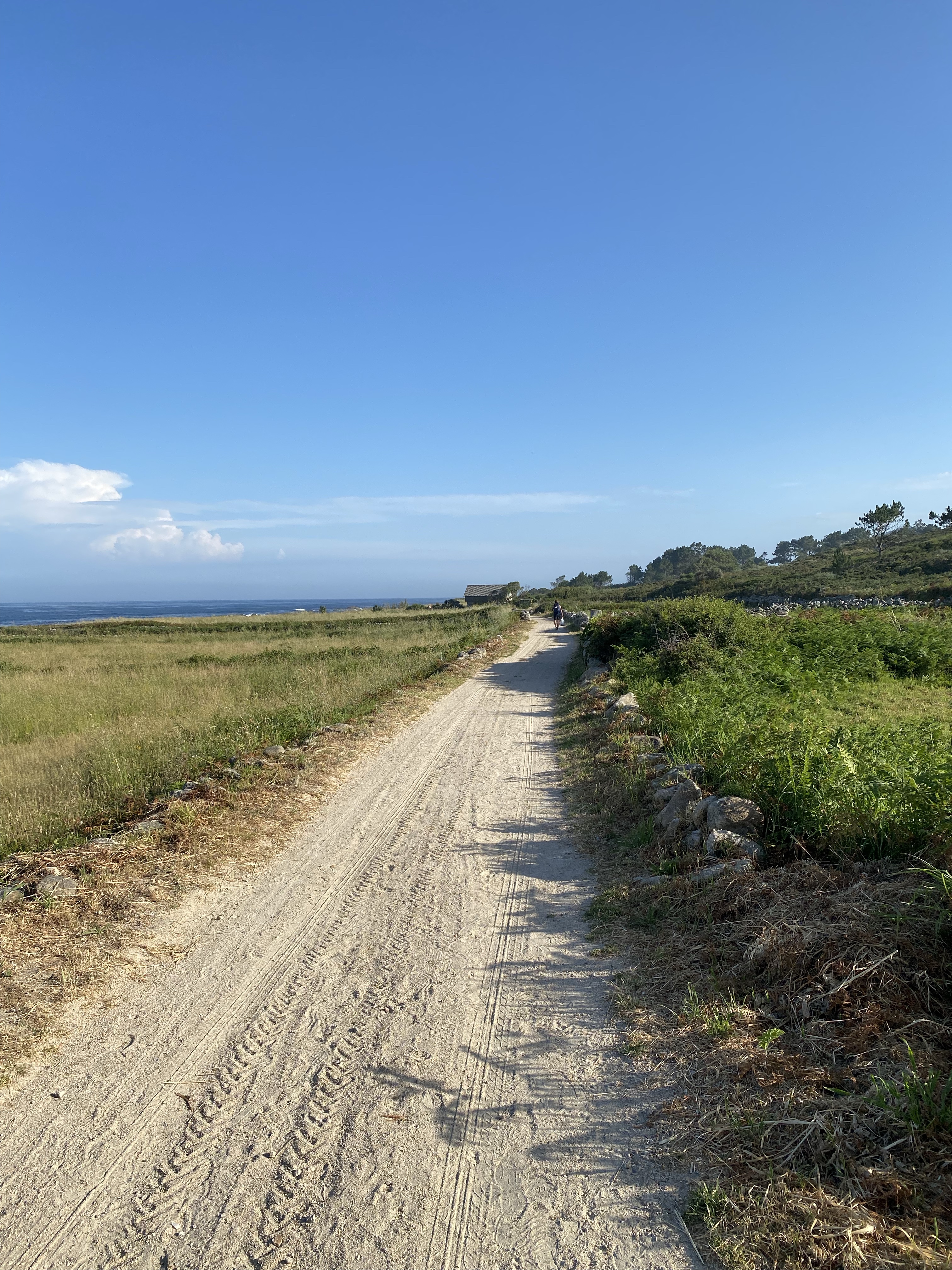 Het weer was minder warm maar nog steeds wel zonnig. Ik vond het heerlijk. Beetje wind, wat letterlijk en figuurlijk een duwtje in de rug gaf. De route was afwisselend langs de kust en door de bossen. Wat flinke klimmetjes waar Pepijn altijd even een voorsprong maakt. Heeft hij tijd om zich op zijn nieuwe Caminofavorietje te storten… hou je vast, dop pinda’s. We kregen ze begin van de reis bij de koffie, tis weer eens wat anders, en sindsdien is het bovenste vak van zijn rugzak er altijd mee gevuld.