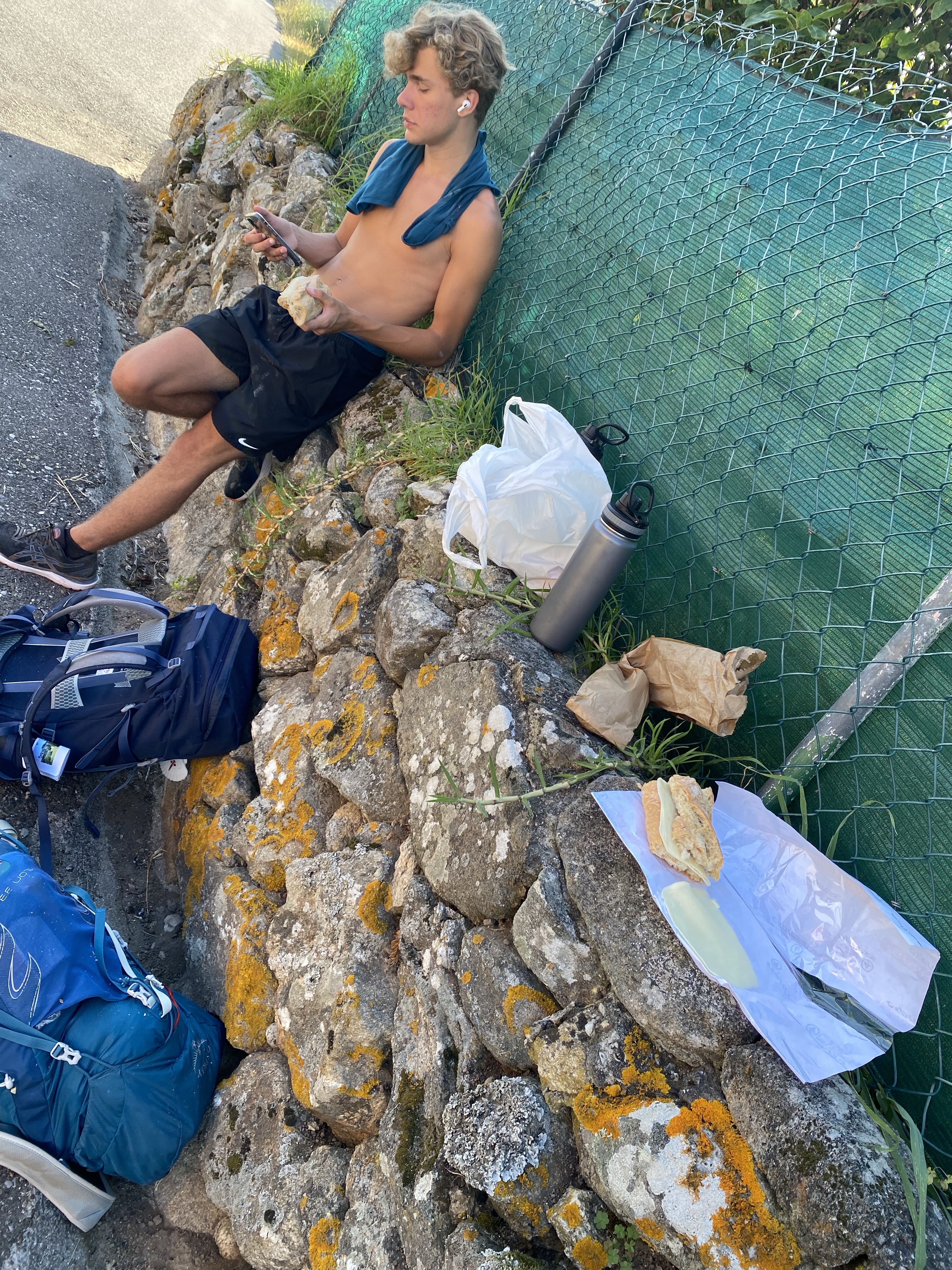 Wat is het bijzonder zo samen met mijn kind. Een totaal andere Camino ervaring. Één waarin ik na een dag lopen toch wat meer loop te zorgen, soms best even wat kleine irritaties zijn, logisch als je de hele dag samen met je moeder bent (en andersom😉), maar ook van veel lachen, lekker hard meebleren met muziek, niet al te veel gesprekken want ‘pfff ik ga niet heel de tijd lopen praten hoor’ (Pepijn), enorm veel voetbal verbalen maar vooral heel heel erg trots want wat doet hij het goed! Hij heeft al een paar keer gezegd dat hij dit maar 1x gaat doen, niet zijn ding al vind hij het nu wel echt heel leuk en gaat er vervolgens ook helemaal voor!