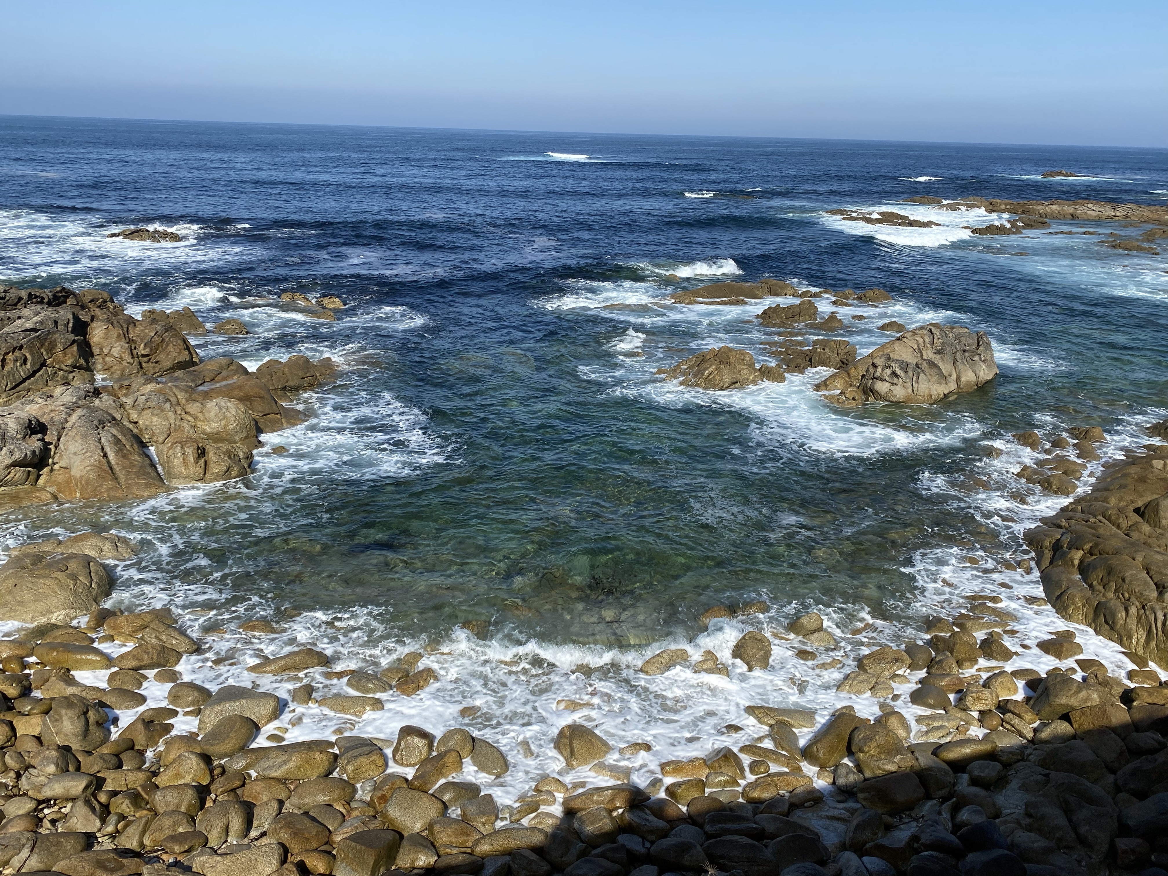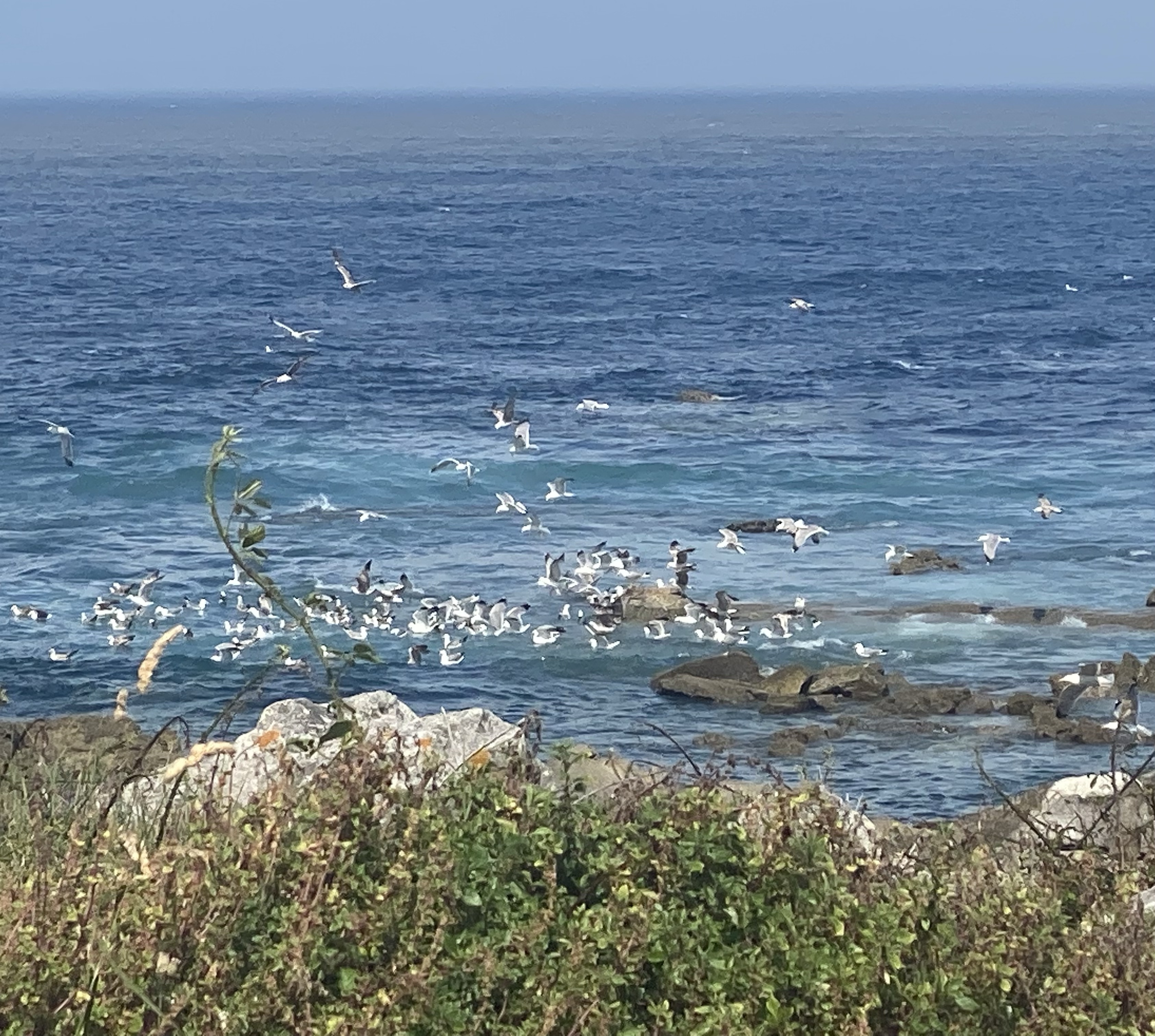 Maar first things first… woensdag…We waren van plan al rond half 8/ 8 uur te gaan lopen maar we hadden zo’n fijne b&b. We lieten het raam open en hadden vanuit ons bed uitzicht op zee. Als ik ‘s nachts met het omdraaien even wakker werd hoorde ik de golven zachtjes tegen de rotsen slaan. Ik heb in maanden niet zo lekker geslapen. Dat huisje aan zee wat ik pas nog uitgebreid gevisualiseerd heb moet er toch echt gaan komen. Inclusief een lekker warm land!