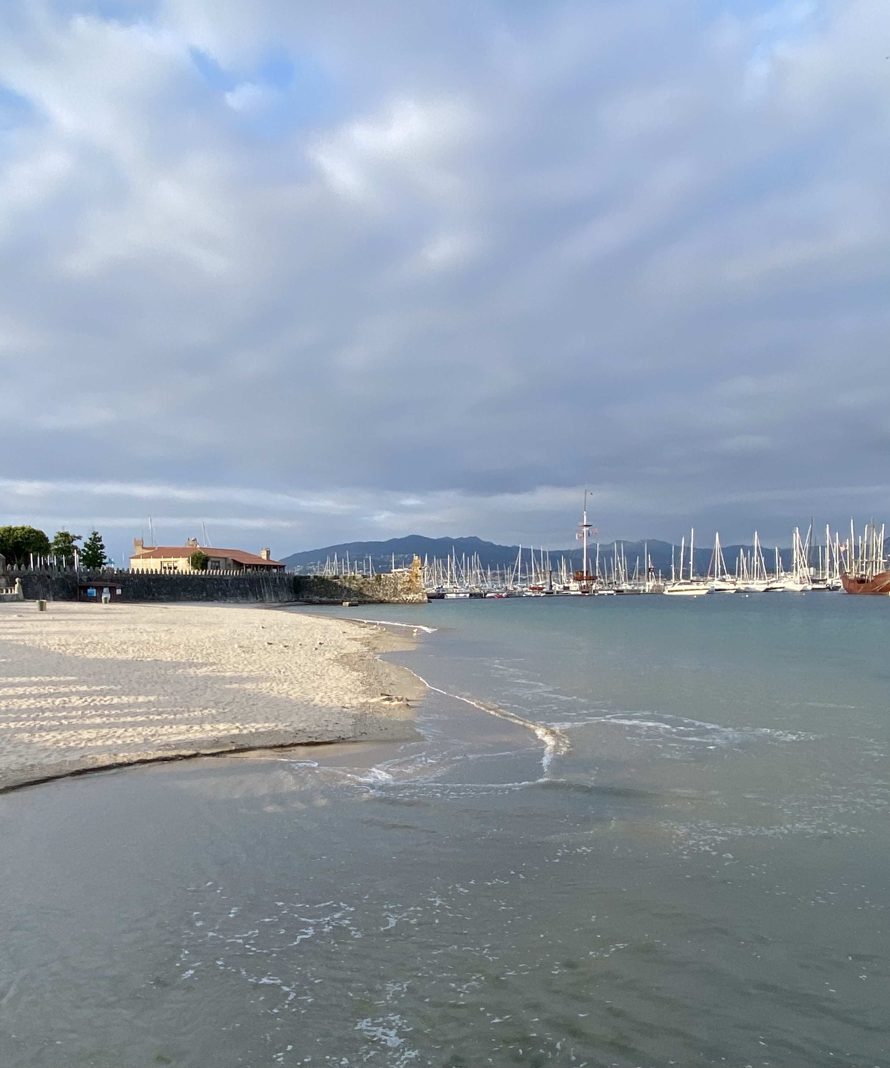 De jachthaven in het mooie oude centrum kwam in zicht en zo ook onze slaapplek. Een heerlijke grote studio waar de boog van de hanglamp nu dienst doet als waslijn.