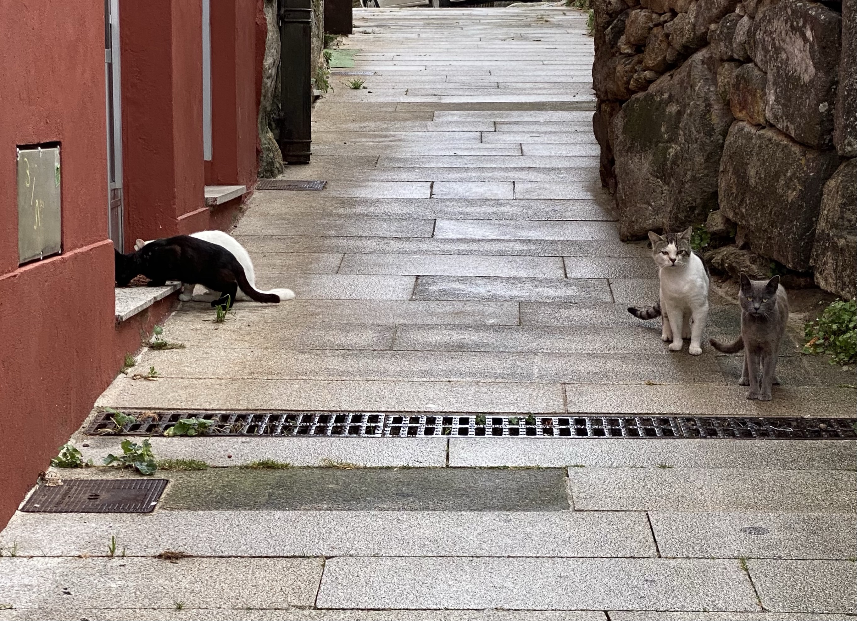 In de verte zagen we de stad opduiken. Ik was daar al eens eerder geweest en toen was de eerste bewoner die ik ontmoette een dode rat op het pad. Toeval maar ook Pepijn werd door zo’n grote vieze dode engerd begroet. Net voordat we een heel dichtgegroeid pad ‘moesten’ nemen. Tussen aanhalingstekens want we bleken verkeerd te zijn gegaan. Het was glad van al het water, rechts allemaal prikkel takken en links liep het schuim af dus het was wat balanceren. Ook hadden we beide die dikke rat nog in ons hoofd dus we liepen er niet echt fluitend door de hoog begroeide wildernis heen.. Ineens lag ik… ik was weggegleden en doordat het zo glad was kon ik mezelf niet omhoog krijgen. Ohh please, lieve ratjes nu niet massaal naar het afscheid van jullie vriend gaan alsjeblieft. Pepijn lag in een deuk. Snap ik, ik heb dat zelf ook.. niet heel aardig maar het heeft gewoon iets grappigs.. Hij hielp me omhoog en doorrrr… tot ik ineens hard ‘shit’ hoorde en hij onderuit was gegaan. Karma😇 Hebben we alle twee in ieder geval gelachen.