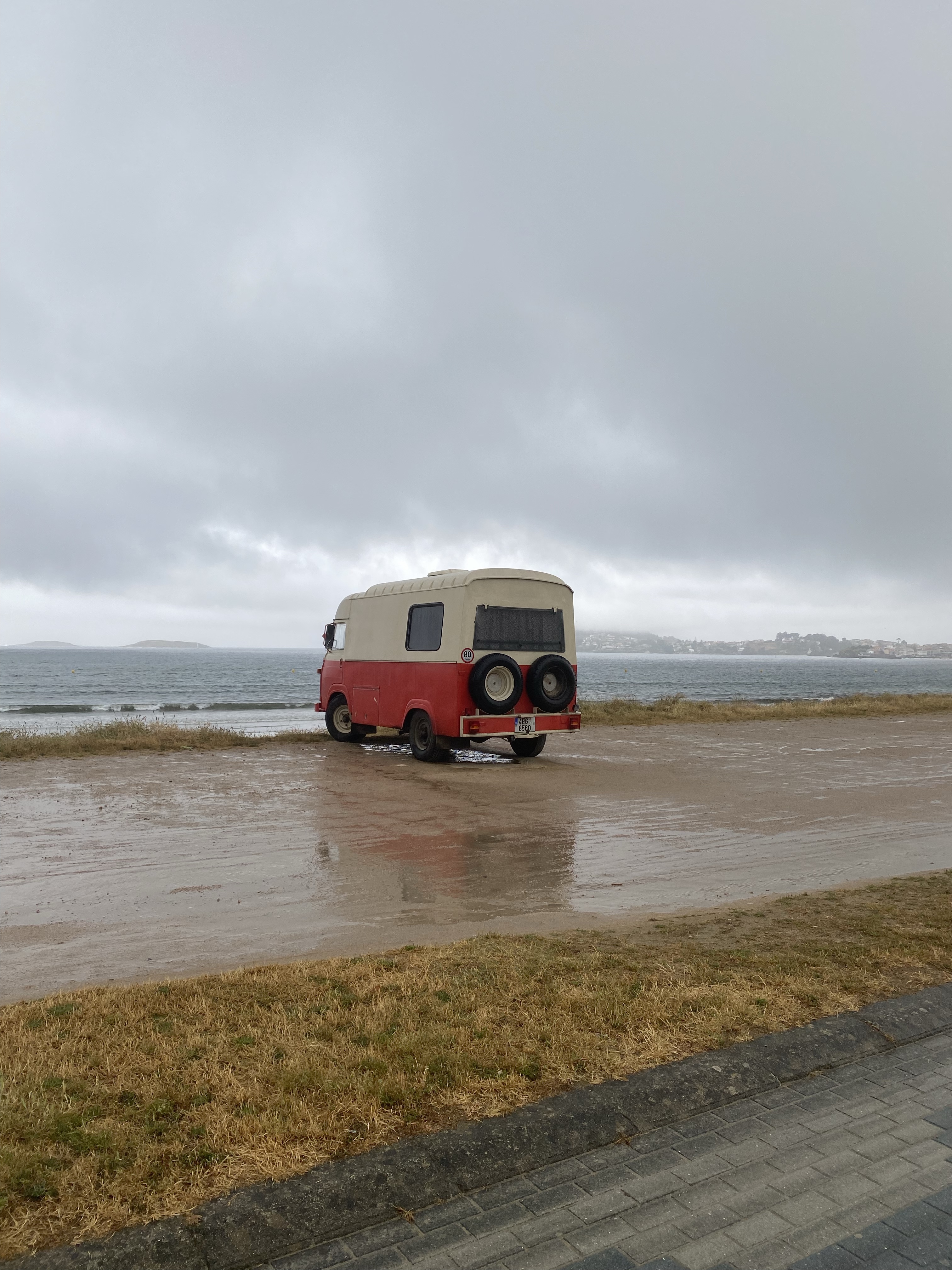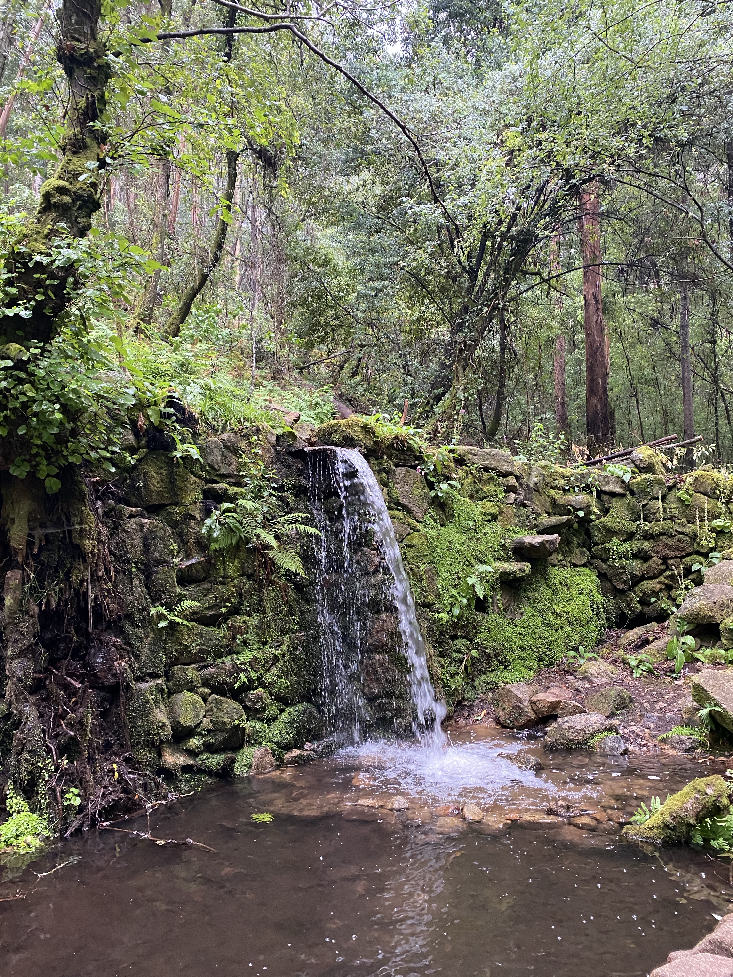 Het druppelen ging over in gieten. Tijd voor een koffiestop. Werd me door zoonlief niet in dank afgenomen na nog geen 20 minuten. Mij leek het echter een prima plan zodat ik nog eens kon kijken wat ons te wachten stond maar ook om te peilen hoe pepijn er in zat. Het zag er echt beroerd uit en dat zagen we ook als we naar buiten keken. Ik vroeg voorzichtig of hij het zag zitten en eerlijk mocht zeggen als hij de route van vandaag in wilde korten met een stukje bus. Oehhh wat had in een moeite met dit voorstel maar het moet wel gezellig blijven. Zijn reactie was duidelijk ‘ ben je gek ofzo!’ En zo stapte we een half uurtje later de plenzende regen in. We waren alle twee super gemotiveerd om dit nieuwe stukje in ons avontuur aan te gaan. De route was echt heel erg mooi!! Met zon was het echt het paradijs geweest. Soms moest ik aan strandjes op Curacao denken. Toen we weer een klim omhoog hadden zagen we de regen in een stroom de berg afkomen. Nog een extra koffiestop. Voor pepijn de gelegenheid een droog en iets warmer shirt aan te trekken. Hij had het zo koud. En ook om voor de 4e x te plassen. Voordeel van al dat zweten is dus blijkbaar dat dat bijna niet meer hoeft, dat was vandaag even anders…