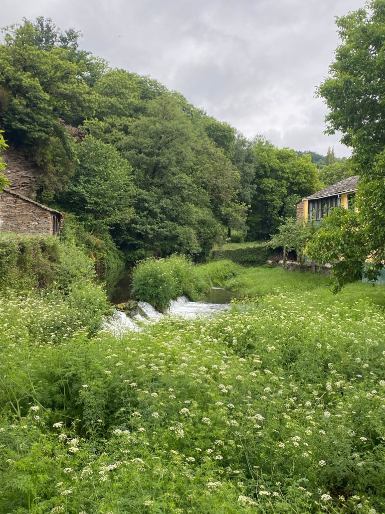Stukje veder doken twee mensen voor me op die ik al eens eerder gezien had. Ze zijn 70 en een paar dagen terug vierde ze hun 48 jarige jubileum. Het is echt leuk om even achter ze te lopen want ze hebben zoveel plezier samen en af en toe stoppen ze om elkaar een kus te geven. Het kost haar enorm veel moeite om de Camino te lopen maar ze zet door. Ik hoop echt dat ze samen voor de Kathedraal in Santiago staan volgende week.