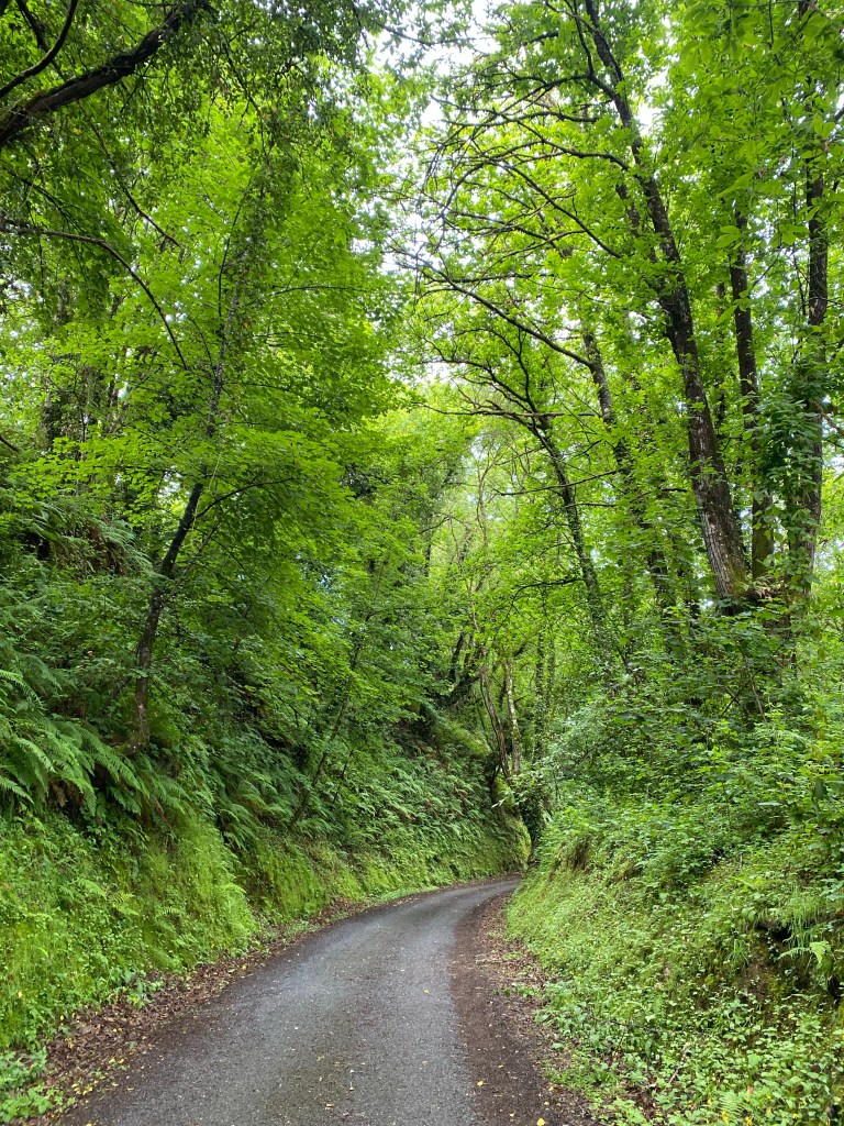 Maar wat ik zei, ik loop graag alleen. Dan kan ik mijn gedachten laten gaan, of juist even helemaal leeg maken om al wandelend te mediteren. Ik had voor vertrek wel wat dingetjes waar ik hoopte beter bij te kunnen als ik in de stilte zou zijn. Ik heb nog een paar dagen nodig😊 Het woordje Licht nam ik in gedachten mee. Ik hou van dit woord! Ik dacht aan Henk, ik dacht aan de zon, aan het proberen zo licht mogelijk te leven, aan heel hard lachen wat zo’n lekker licht gevoel kan geven , ik probeerde te bedenken hoe ik mijn licht kan laten schijnen en iets zou kunnen betekenen in de wereld, ik dacht aan de kaarsjes die ik in Santiago ga branden wat iedere keer weer zo’n bijzonder moment is…maarrrr… ik dacht ook aan mijn weegschaal… zou ik al iets lichter zijn, en er al iets vanaf gewandeld hebben🤪? Ik liep langs een huis met een Boeddha beeld voor de deur, die had ik hier nog niet gezien dus ik keek nog een keer extra. Er zat daar vlakbij iemand op een muurtje en hij begroette me met zijn handen tegen elkaar voor zijn hart, ofwel Namaste. Dit was dus weer zo’n magisch momentje want de betekenis van Namaste is ‘Het Licht in Mij groet het Licht in Jou’ Hoe mooi is dat!Dit kaartje had zijn werk vandaag goed gedaan!