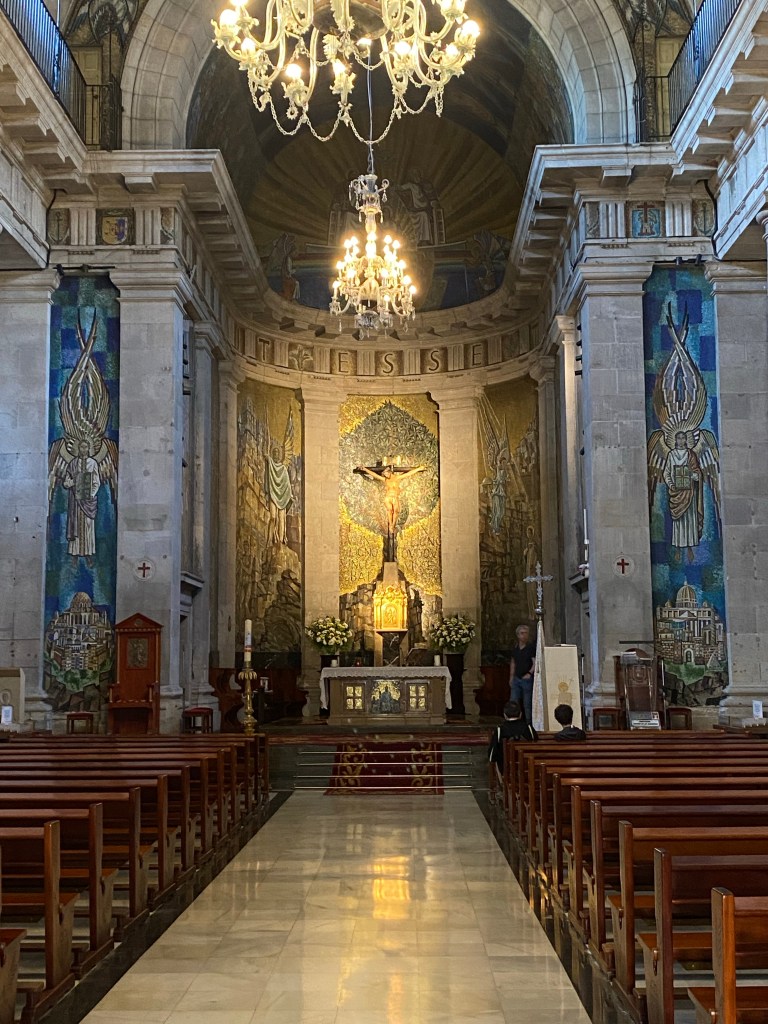 Het hostel van vannacht ligt tegenover een kathedraal. Nu was ik gisteren vergeten mijn pelgrims paspoort te laten stempelen (duhhh die geiten hadden zo’n ding niet), vandaag besloot ik de dag er maar mee te beginnen. Toen ik de kathedraal in liep zag ik eerst niemand tot een man me riep. Ik weet nooit hoe zo iemand in de katholieke kerk heet. Ik mocht mee naar achteren lopen voor een stempel. Daar hou ik van! Beetje gluren bij de buren ofwel op plekken komen waar je anders niet mag komen. Ik moest naam, land en leeftijd invullen. Grappig, dit was de eerste keer dat ik 50 op moest schrijven. Ik keek de man aan of hij het ook grappig vond maar natuurlijk niet, waarom wel? Wat ik dan op mijn beurt weer niet zo grappig vond is dat hij zijn tandenborstel blijkbaar kwijt was… al een maand of 4… doorstempelen aub gracias!
