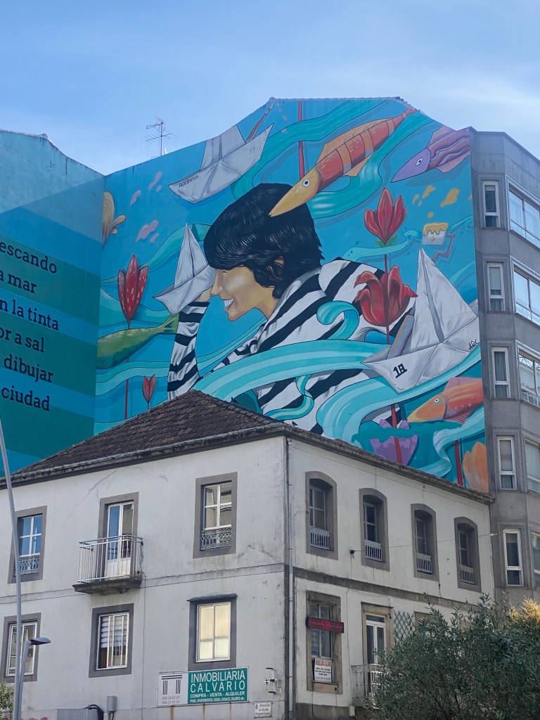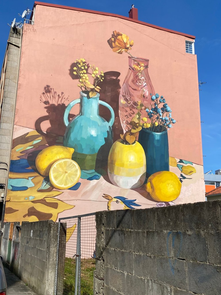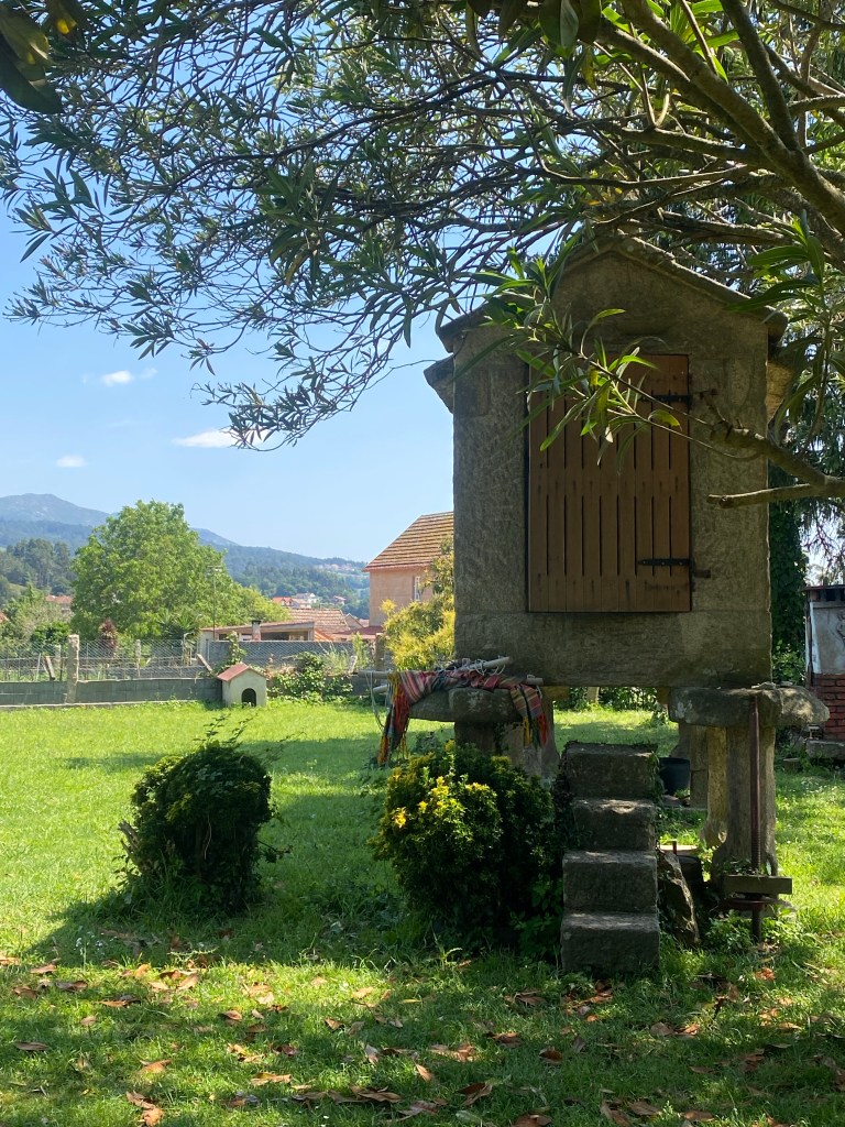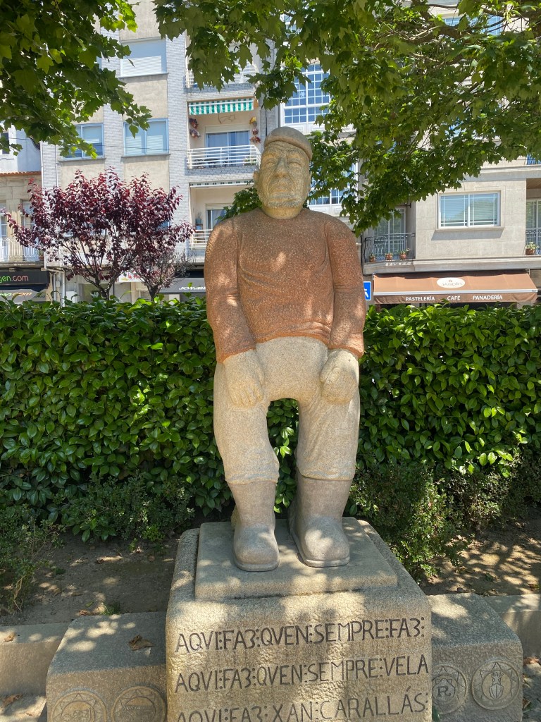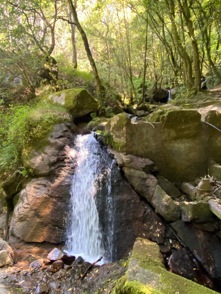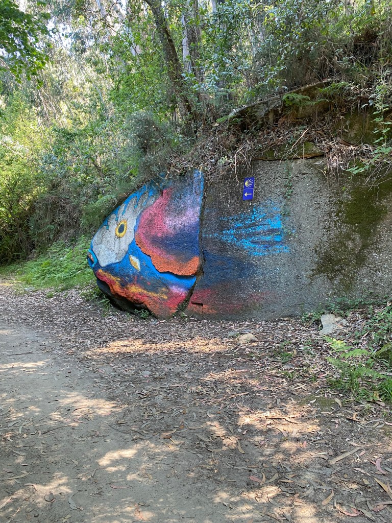 Daar ging ik weer. Het drukke verkeer van Vigo door en dan lekker het bos in. Nu is de weg terugvinden ook vorige keren een uitdaging geweest. En dit keer niet anders. Een aantal keer goed gegokt maar toen wist ik het echt niet meer. In de supermarkt konden ze me niet verder helpen tot een schattig ouder stelletje naar binnen kwam lopen. ‘German ?’ vroeg de oude man. ‘Nein, aber ich kann es verstehen.’ Gelukkig was zijn Duits van mijn niveau, al liep hij te stralen en dacht dat het van hem vloeiend was. Hij had 30 jaar geleden in Duitsland gewoond. Zijn vrouw spoorde hem aan even een stukje mee te lopen. Hij gaf me een gezellige arm en daar gingen we. Ik stelde nog voor dat hij mee naar Santiago zou gaan maar zolang kon zijn vrouw hem niet missen zei hij lachend.