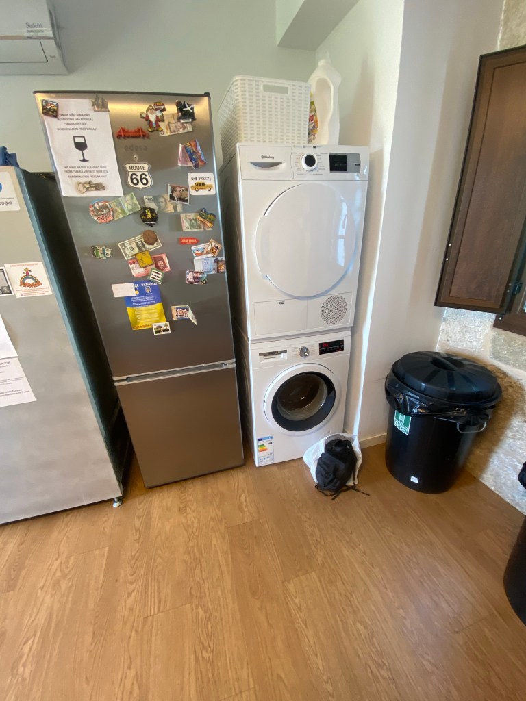 Nieuwsgierig werd ik wakker. Hoe erg zal de spierpijn zijn? Voorzichtig stapte ik mijn bed uit. Noppes, niks…wat kleine pijntjes maar die had ik al. Wel voel ik dat mijn voeten moe zijn. Eigenlijk ben ik helemaal best wel moe. Maar dat hoort er allemaal na een week lopen bij weet ik inmiddels zo veel Camino’s verder (bij mij dan hè, anderen zitten daar misschien heel anders in). Een snelle douche en dan al mijn spullen weer eens bij elkaar verzamelen. En dat losgeld wat in mijn zak rammelt even opruimen. Ohhh jeee, dat is geen geld maar de sleutels van het hostel van gisteren. Zal die man blij mee wezen. Maar komt goed, ik stuur ze op. Gelukkig had ik de bon in mijn tas gepropt dus ik weet nog waar ik geweest ben🤪