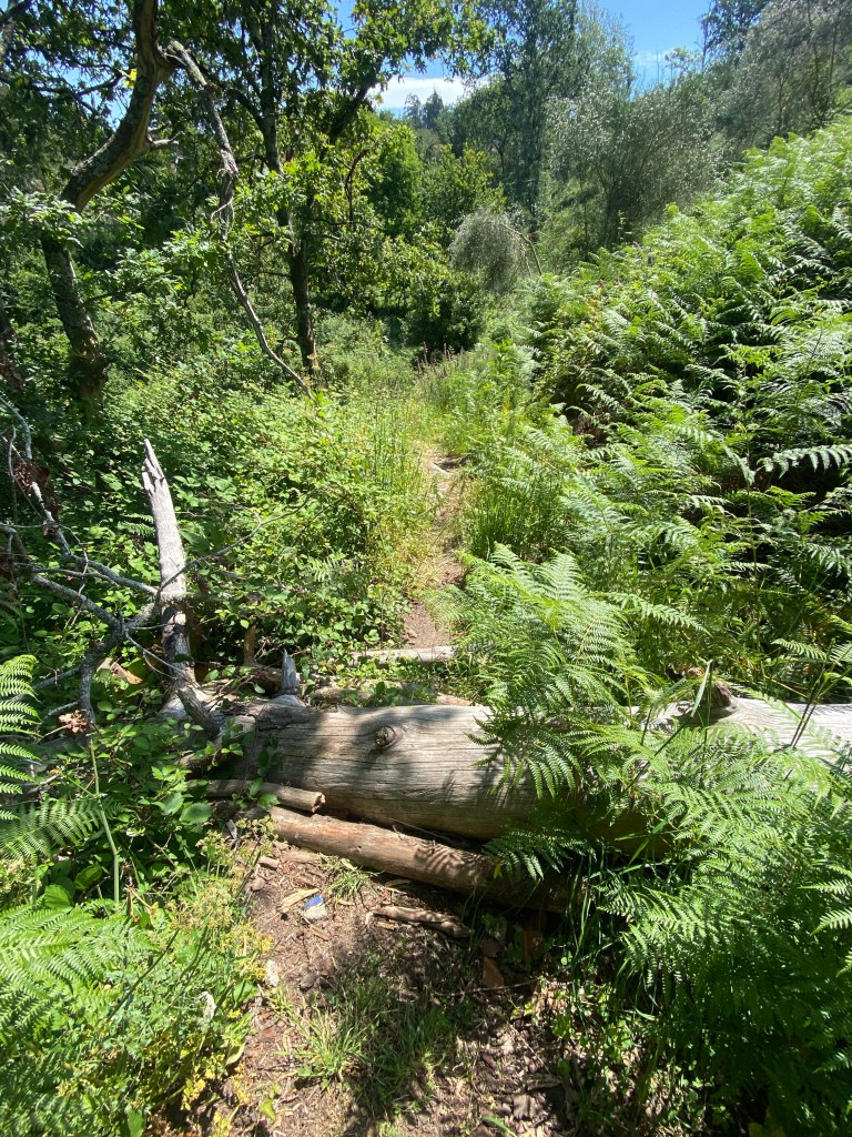 Ik had al vraagtekens kunnen zetten op het moment dat ik de eerste flinke heuvel op klom. Maar ik liep nietsvermoedend lekker naar de vogeltjes te luisteren en om me heen te kijken. Het was hier zo stil. Heel de Camino is het niet druk maar hier is het echt stil stil. Na een tijdje drong het tot me door dat ik weer de verkeerde route had genomen. Je kunt deze namelijk op 2 manieren doen, langs de kust of door het bos met iets meer klimmen. Beide zelfde afstand maar de ene net iets pittiger dan de ander. Het was niet anders, teruggaan zou te ver zijn. Weer een stuk verder bedacht ik me dat ik al heel lang geen gele pijl meer had gezien en het pad eigenlijk geen pad meer was maar een dicht begroeide jungle. Neee het zal toch niet… ik had gewoon beide opties van de route gemist? Moment van twijfel maar ik had echt geen idee of het handig was terug te lopen en waar naar toe dan? Twee geiten stonden me ook aan te kijken of ik gek geworden was. Dus ik ging door… met nog 2 slokken water in mijn fles. Mijn armen lagen inmiddels open van de prikkels en ook de steekvliegen waren blij dat er weer eens mensen bloed voorbij kwam. En ik ging omhoog, en nog hoger en klein stukje omlaag en weer omhoog en iets naar beneden en weer omhoog. Het was heet en geen zicht op de bewoonde wereld. Waar de f*** was ik terecht gekomen. Toen zijn er wel wat woorden die al een tijdje het licht niet hadden gezien de wereld in geslingerd. De regelmatige lezer weet dat ik geen fan ben van klimmen. Met nog wat pech later die dag stond er op het moment dat ik ‘s avonds mijn bed in stapte 91 trappen op mijn app. Thuis ben ik na 2x de trap op lopen al moe (nou jaa bij wijze van…). Er leek geen eind aan te komen en ook mijn telefoon had geen bereik dus het had geen zin om Google Maps aan te zetten.