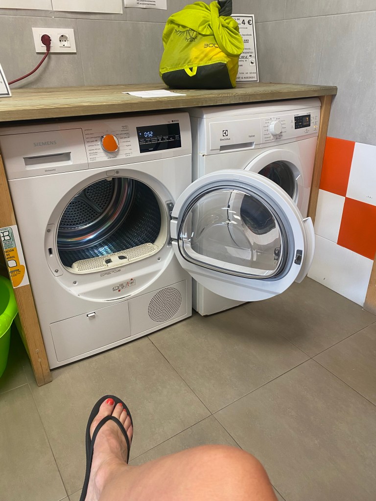 Eerst maar weer eens mijn was doen. Tijdens het wachten zat ik in de woonkamer onopvallend een gesprek mee te luisteren. Of meer een discussie… wanneer mag je zeggen dat je een Camino gelopen hebt? Daar waren de meningen over verdeeld. Een vrouw met knetterharde stem gaf af op iedereen die alleen de laatste 100 km deed zodat ‘ze konden zeggen dat ze een Camino gelopen hadden!’ Zelf had ze er 2 weken op zitten en dat was volgens haar het echte werk. Ik beet mijn tong af want daar zal iemand die vanaf Nederland loopt het misschien weer niet mee eens zijn. Als ik haar zo heftig hoorde praten gunde ik haar (en daarmee haar mensen thuis🙈) sowieso nog een paar maanden Camino. Ik moet eerlijk zijn, ook ik vind wel ergens wat van… maar eigenlijk ook weer niet, ieder zal doen wat hij of zijn kan. Maar als ik vanmorgen de tientallen rolkoffers zie staan die vervoerd worden dan krijg ik ook wel een beetje de kriebels. Maarrrr ik probeer niet te oordelen wil het bij mezelf te houden. Wat betekent voor mij een Camino? Het is mezelf soms tot uiterste drijven, doorzetten door de weerstand heen. Vrijheid, dat is denk ik de nummer 1. Iets wat sowieso hoog bovenaan mijn lijstje persoonlijke kernwaarden staat. Daarnaast op een voor mij fijne manier proberen de wereld ook een klein beetje mooier te maken door er een goed doel aan te koppelen. Maar ook mezelf openstellen voor nieuwe mensen, soms worstelen met andere talen, meebewegen, is er eens niets te eten dan maar een keer niet, loop ik verkeerd, dan zal vast wel weer ergens het juiste pad opduiken. Op plekken slapen waar ik in het normale leven niet aan zou denken en dit ook nog eens delen met zoveel mensen inclusief douche en toilet. Het soms zo vreselijk zat zijn en dan toch na een korte stop weer op staan en met nieuwe energie doorlopen.En dat heerlijke gevoel wanneer ik ‘s morgens fris met mijn rugzak op mijn rug naar buiten loop. Zo zijn er nog wel wat dingen op te noemen. Zo ook het lief zijn voor mezelf… waar ik andere Camino’s echt vond dat ik altijd op slaapzalen moest slapen (behalve in de Corona tijd toen ik samen met Pepijn was) heb ik mezelf dit keer af en toe een kamer alleen gegund om wat bij te slapen.