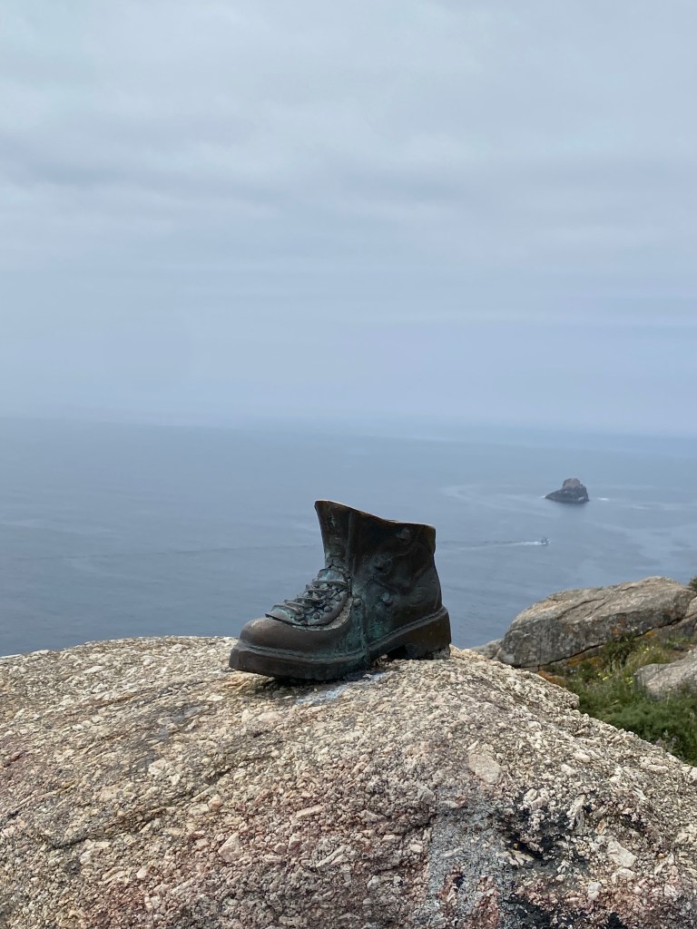 Gisteren vloog die 3,5 durende busreis voorbij en stapte ik in de loop van de middag uit in het centrum van Finisterre. Een klein dorpje aan zee waar heel veel pelgrims rondliepen. Ik besloot daarom eerst maar een hostel te zoeken om zeker te zijn van een slaapplaats. Er stond een lange rij en een klein meneertje liep druk heen en weer. Ik ga proberen de situatie te beschrijven maar het zal de lading niet dekken. Het meneertje was een echt haantje. Hij had duidelijk geen zin in veel gedoe. Waar je normaal 1 voor 1 geholpen en je bed gewezen wordt vond hij het handiger het allemaal in 1x te doen. Dus riep hij boven het gepraat uit, ‘iedereen via booking gereserveerd? Dan mag je je paspoort geven dan doe ik dat later en zoeken jullie nu een bed uit! Terwijl hij dat zei reserveerde ik maar snel online dan kon ik mee met de grand tour en misschien een bed onderin scoren. Toen hij voor me stond drukte ik precies op de laatste stap van boeken, i was in! Als een professionele gids liep hij voorop, miste alleen nog een parapluutje. Het was een kleine man maar door zijn houding groots. Hij genoot zichtbaar van zijn rol als tourguide. Soms hield hij ineens stil en brulde dan dat achterin de damesbadkamer is, washok op rechts, heren voorin, en door… achter elkaar liepen we met hem mee naar boven. Onderweg nog een stop voor weer een uitleg. Bedenk je zo’n 16 mensen met zware rugzak mee de trap op huppelde en een onverwachte stop dus niet heel handig is. . We werden er in ieder geval wel erg lacherig van. Ennn next stop. We waren bij een lange gang, links ramen en recht allemaal soort van 5 of 6 zijstraatjes waar elk 4 stapelbedden waren dus 8 slaapplaatsen. ‘Okay, 1,2,3,4 man, no ladies.’ De eerste 4 mannen waren gedropt. Later zouden de bovenste bedden nog gevuld worden. Door naar de volgende 4 mannen. Toen de vrouwen, een Amerikaanse en ik hadden ons bed al uitgezocht tot 2 zure (sorry, ze waren het echt) Nederlandse vrouwen om de een of andere reden vonden dat ze daar moesten liggen. Door de manier waarop ze keken gunde ik hun een heelllleeee goede nacht en liepen we door naar de volgende ruimte waar nog 7 leuke gezellige meiden van begin 20 zouden slapen. Omdat ik nu van de Portugese route af was hoorde ik andere verhalen. Ze hadden de lange route vanuit Frankrijk gelopen en deze route erachter aan geplakt dus waren ongeveer 7 weken onderweg geweest en kende elkaar daardoor ook al goed. Dat schept absoluut een band, wat ik zo goed begrijp dus ook hier bleef het voor mij bij wat gezellige gesprekjes tijdens het bed opmaken. Voor degene die dit op een manier leest alsof ik me zielig voel, nope, helemaal niet! Al begin ik wel iets vaker zin te krijgen om weer eens lekker uitgebreid te kletsen. En eens heerlijk te lachen om niks. Of juist een mooi diepgaand gesprek te voeren langer dan 5 minuten. Het blijft allemaal wat oppervlakkig. Een paar keer per dag deel ik met Steve (mijn Caminovriend van 2018 die nu met zijn vrouw ook aan het wandelen is) onze avonturen via ingesproken berichtjes en foto’s op de app. Dus zo heb ik toch een echt Camino maatje, wat super leuk is, je zit beide in diezelfde bubbel.