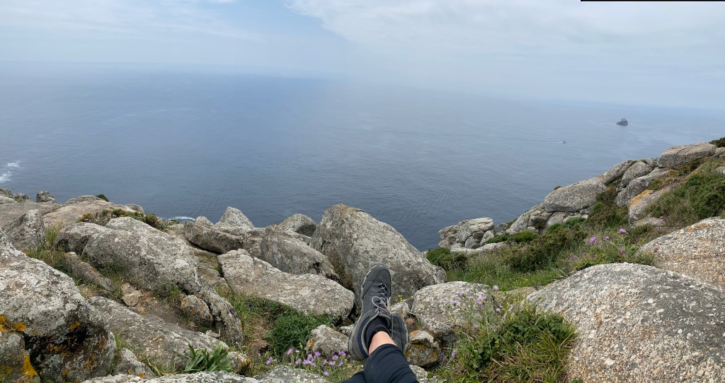 Het uitzicht was geweldig!!! Vanaf de rotsen word je bijna omringt door de zee wat de indruk geeft dat er inderdaad verder niets meer is. Ik heb daar heerlijk een tijdje voor me uit zitten staren. En naar de zonsondergang gekeken… yep, zonsondergang…ik heb zo mijn connecties🤪. Mijn vriendin is hier wel op een mooie dag geweest en stuurde me op dat moment de foto’s! Met wat van mijn fantasie erbij was het net echt…