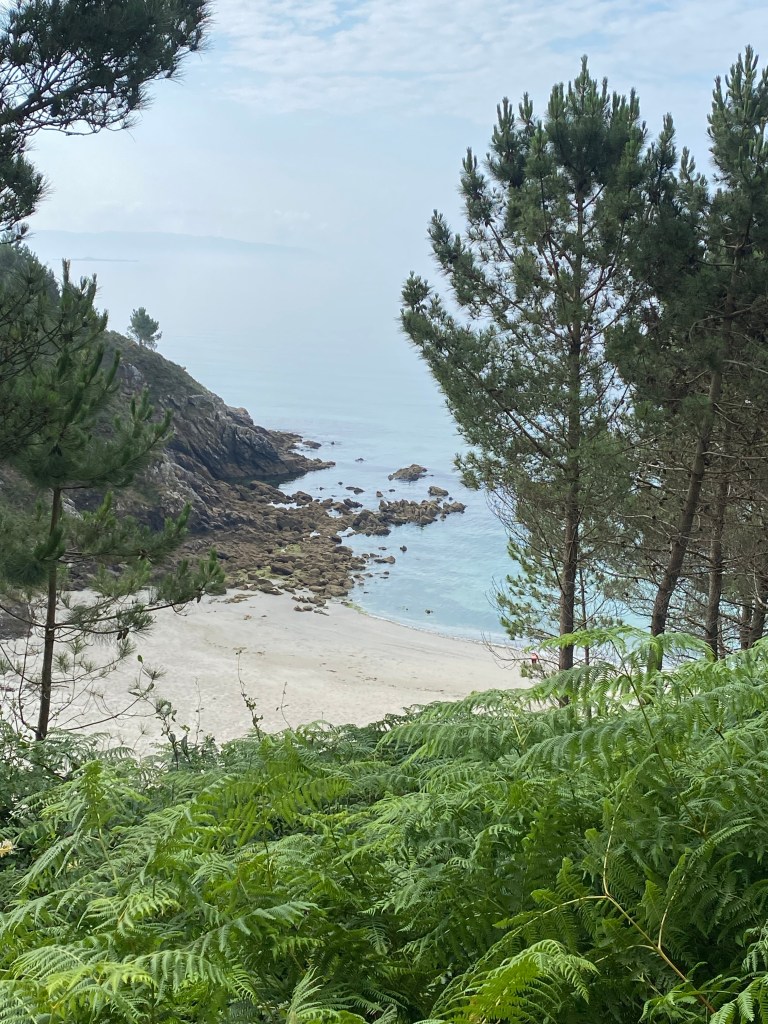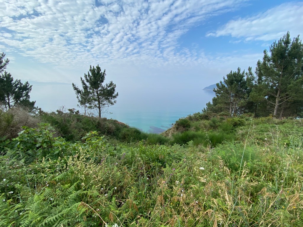 Ik ben vandaag in een plaats geëindigd waarvandaan de bus naar Santiago gaat. Morgenochtend ga ik beslissen of ik die neem of dat ik van de route af ga wijken en nog een dag langs de kust wandelen meepak. Ik weet alleen niet hoe het pad is en of het veel klimmen zal zijn. Meer en meer voel ik dat het wel klaar is. Nu blijf ik straks een paar dagen in Santiago dus om daar nu al heen te gaan wordt misschien wat veel.. Ga er niet meer verder over nadenken , ik zie het morgen wel weer.