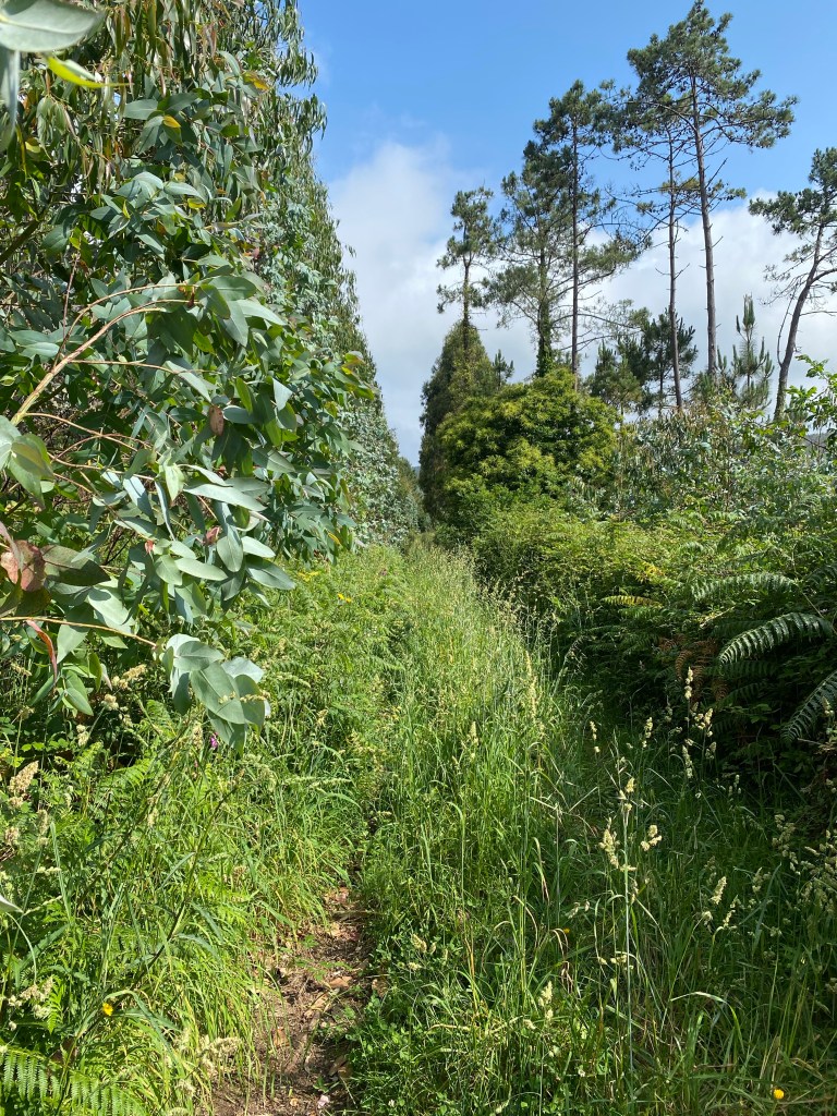 Na de koffie ging ik dus in tegengestelde richting wandelen. Ofwel de pijlen andersom volgen. En iets in mijn brein veroorzaakt dan een error. Dus na een half uur had ik al zeker 6x onderweg gevraagd of dit nog de goede weg was. Het pad werd stiller. Super mooie uitzichten. Heel veel fotomomentjes. En de gezellige voiceberichten van Steve. Waardoor ik dus de gele pijlen focus totaal kwijt was en mij weer eens een omweg van ongeveer een half uur, een enorme klim en dicht begroeid pad met prikkels en steekvliegen opleverde. De rode bulten waren net weet een beetje weggetrokken 🙈In plaats van naar beneden was ik naar boven gaan lopen. Iets in me zei me al dat dit niet helemaal goed ging . Ik heb nog even staan wachten om te kijken of er andere pelgrims aan kwamen maar niets. Gelukkig vond ik al vrij snel het pad weer terug.