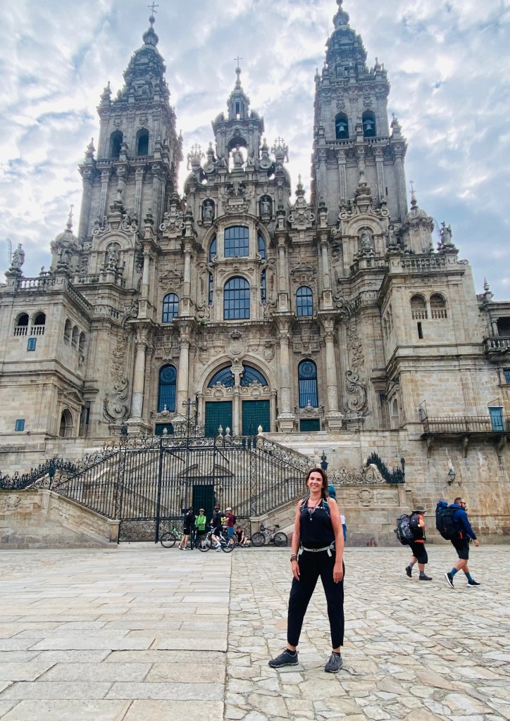 Net als de jaren hiervoor word ik wakker met een soort van zenuwachtige kriebel in mijn buik. Ondanks dat ik iedere steen in Santiago inmiddels ken blijft het magisch om binnen te lopen. Ik was al vroeg op pad, 07.30 uur en kreeg onderweg al de vraag of ik de Camino hardlopend deed. Oké, in de vertraging, deze laatste kilometers bewust in me opnemen. Ik liep een stukje met een aardige Duitser maar toen hij een stempel ging halen voor zijn pelgrims paspoort heb ik hem gedag gezegd. Ik wilde namelijk alleen de stad binnen wandelen. Voelen wat er gevoeld mag worden. Steeds een stapje dichterbij. Daar was de lange, niet zo gezellige, wat stijgende weg richting Santiago waar ik ieder jaar weer twijfel of ik wel goed ga, daarna het park als herkenningspunt op links, het zebrapad met stoplicht die in al die jaren nog nooit eens lekker op groen heeft gestaan. Al bedenk ik me gelijk dat dit best fijn is om het euforische effect nog wat meer op te bouwen, door naar de smalle straatjes met winkeltjes en restaurants waar het steeds wat drukker wordt. Nu was ik vroeg maar alsnog lopen er altijd wel net binnengekomen pelgrims. En dan ineens het grote plein voor de Kathedraal. Een bijzonder moment wat maar moeilijk te beschrijven valt. Blijdschap, trots, vrolijkheid, ontroering, verwondering, nederigheid, emotioneel, stilte, chaos, alles loopt door elkaar. Dikke tranen gleden over mijn wangen. Niet zozeer van verdriet dit keer. Dat was het jaar ervoor anders geweest toen mijn vader nog maar net overleden was. Het was meer het gevoel dat ik weer zoveel sterker en rustiger ben. Dat ik in mijn kracht sta. Dat het geweldig is om 50 te zijn! En dat ik nieuwsgierig uitkijk naar de ander helft van dit mooie leven. En rustig in de zin van innerlijke rust (met een hyper buitenkantje af en toe🥳). Zo stond ik een tijdje. En uiteraard dacht ik aan de afgelopen 1,5 jaar waarin ik zo veel verdriet heb gevoeld. ‘We hebben het geflikt Henkie!!’ mompelde ik zachtjes. En ik hoorde zijn stem in gedachten antwoorden ‘goed gedaan weer LC-tje’