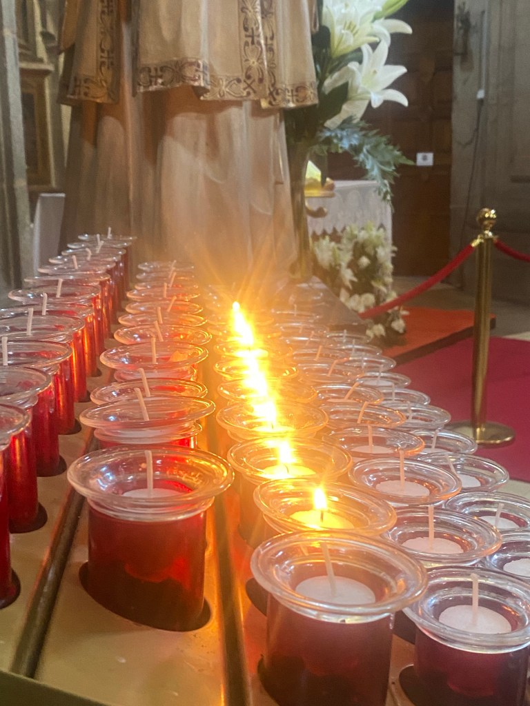 Maar het verhaal is nog niet klaar… want natuurlijk had ik ook dit jaar weer steentjes in mijn zak meegenomen voor een aantal mensen thuis. Symbolisch, om hun zorgen, verdriet, angst etc mee te dragen en dit met liefde in Santiago los te laten. Het andere ritueeltje is het branden van de kaarsjes. Met het aansteken spreek ik in gedachten de wensen en intenties uit, vraag ik om kracht, positiviteit en heel veel liefde. Ook herdenk ik de mensen die er niet meer zijn. En een kaarsje voor alle kinderen die nu op mogen groeien, die hopelijk het verschil mogen maken en van de wereld een nog mooiere plek weten te maken, ik heb er alle vertrouwen in💛