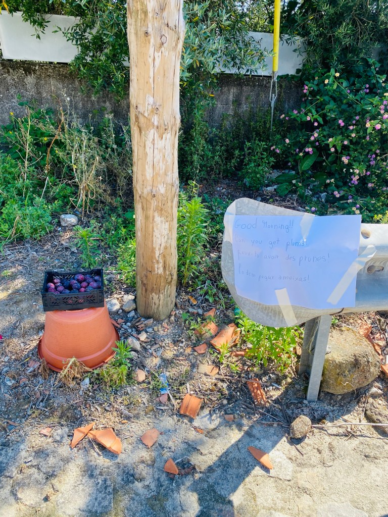Hij liep me voor naar de slaapzaal. Super eenvoudig maar helemaal prima. Ik had een douche, een bed en ik kon heerlijk gaan lunchen! Hij drong er op aan dat ik bij een restaurant even iets verder moest gaan eten. Het beste restaurant van de omgeving. Dus na een opfrissertje liep ik op mijn slippertjes naar boven. Het was er idd druk. Ik ging aan een tafeltje bij 2 jongens zitten, goed in het zicht van het personeel want ik had trek! Een meisje zette een bord neer en reageerde verschrikt dat ik Engels sprak en liep weg. Ik ging er vanuit dat ze een Engelse kaart ging halen. 10 Minuten later was ze nog niet terug, omdat het zo druk was wilde ik niet lastig zijn maar na een half uur liep ik toch maar naar haar toe. ‘No speak English ‘ zei ze. Huh??? Zou ze me dan gewoon hebben laten zitten totdat ik misschien boos weg zou lopen. Toen schoot mijn buurman me te hulp als vertaler. Er was wienerschnitzel of wit vis. Visje dan maar. De jongen kreeg een big smile op zijn gezicht, ‘Kom je uit Nederland?’ ‘Ik uit België.’ Eénentwintig was hij, een jaar ouder dan mijn zoon, Belgische vader Portugese moeder, 9 jaar geleden naar Portugal verhuist en nu heel gelukkig met zijn werk als hovenier en zijn eigen barretje, wat hij net begonnen was.