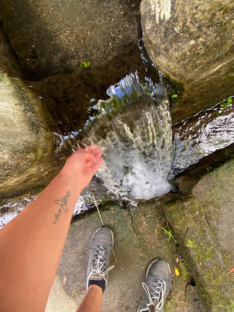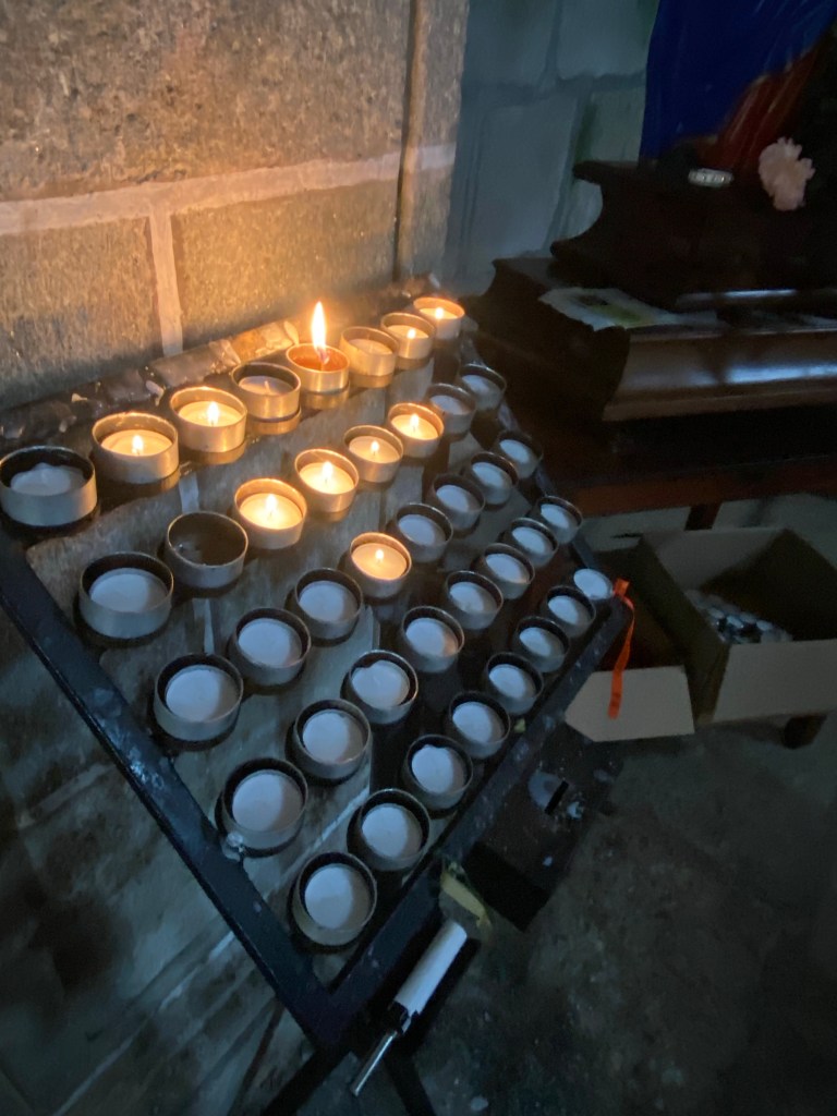 Geen tijd te verliezen. Dus toen ik verder liep en een mooi kerkje zag besloot ik daar eens heen te lopen. Nu wandel ik dit stukje route al voor de 6e keer en ben er dus 5x eerder voorbij gelopen. Ik kies er meestal niet voor om bewust van het pad te gaan en extra meters te maken. Die maak ik al genoeg door de keren dat ik verkeerd loop. Maar in het kader van (nog) meer genieten nam ik de tijd. Het pad bleek naar een tuin te leiden. Daar aangekomen zag ik allemaal mensen wachten. Was er iets bijzonders te zien? Ja dus, daar stond een monnik (ben niet bekend met de benamingen maar zo hoorde ik iemand hem noemen) en hij deed handopleggingen. Een vrouw vertelde me dat hij ‘blessings ‘ gaf. Nu ben ik niet katholiek maar ik denk dat we dezelfde intentie hebben, zoveel mogelijk vanuit liefde en vrede leven. Ik sloot dus aan in de rij. Voor mij voelde wat ik voor me zag hetzelfde als het geven van een healing. Uiteindelijk hebben we allemaal hetzelfde voor ogen in het leven alleen geven we er andere benamingen aan en misschien is de invulling net even anders.