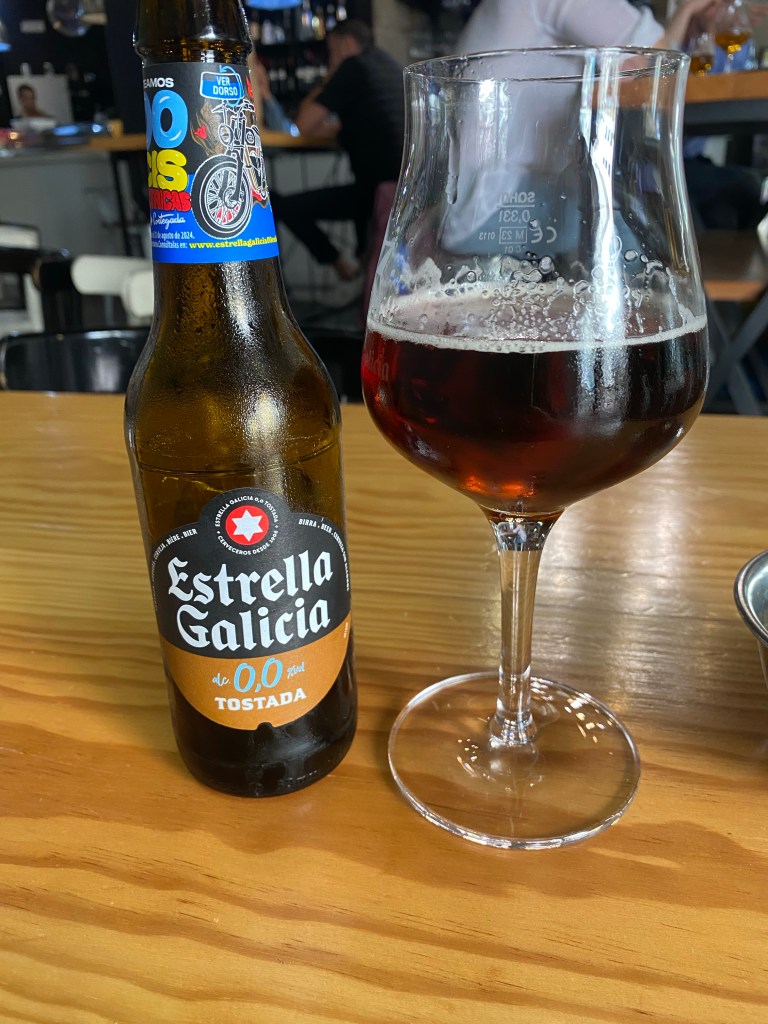 Wat nu… ik wist het echt niet. Dit was voor mij de place to be. Zeker omdat er onderweg veel gefrituurde gerechten zijn en ik die zoveel mogelijk probeer te skippen. Ik ben de kroeg in gedoken. Helemaal ‘los gegaan’ met 2 alcohol vrije biertjes inclusief olijven en nootjes om vervolgens te besluiten dat ik het wel zat was voor vandaag. Dichterbij het hostel zat de Froiz, een supermarkt daar ging ik een salade halen, een pak rijstwafels en de kaas nog een keer proberen want ik had nog geen loslopende hond gespot.