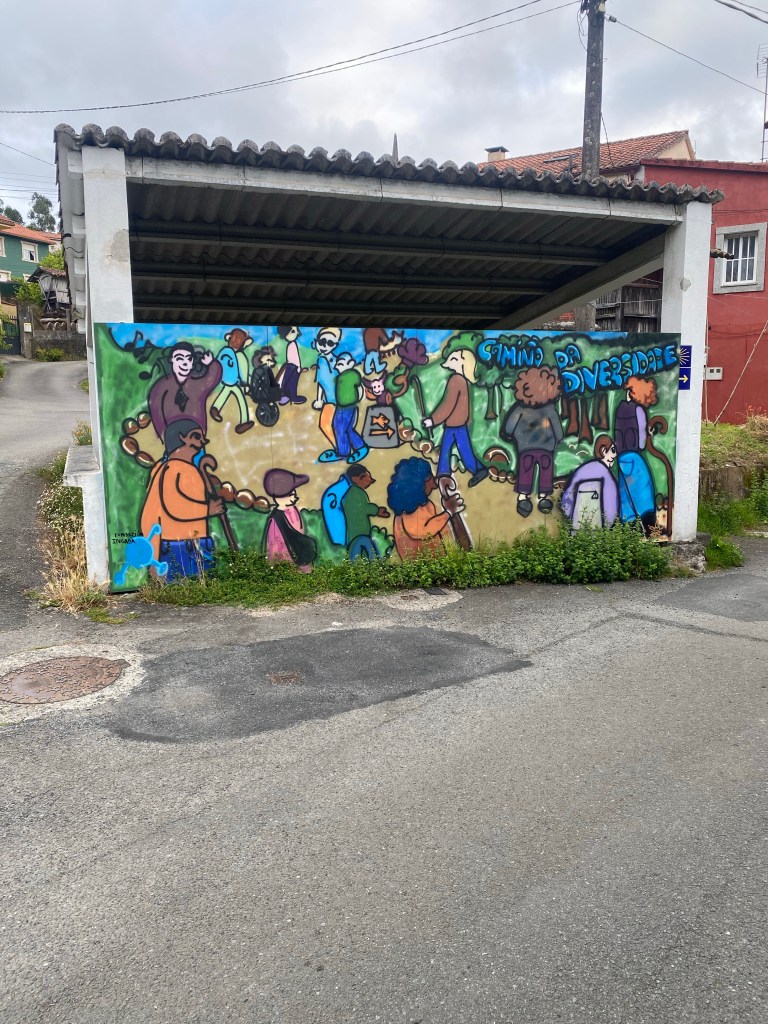 Toen ik naar buiten wandelde voelde de zon heerlijk warm en stond ik meteen weer in de gezelligheid van het pelgrimleven.